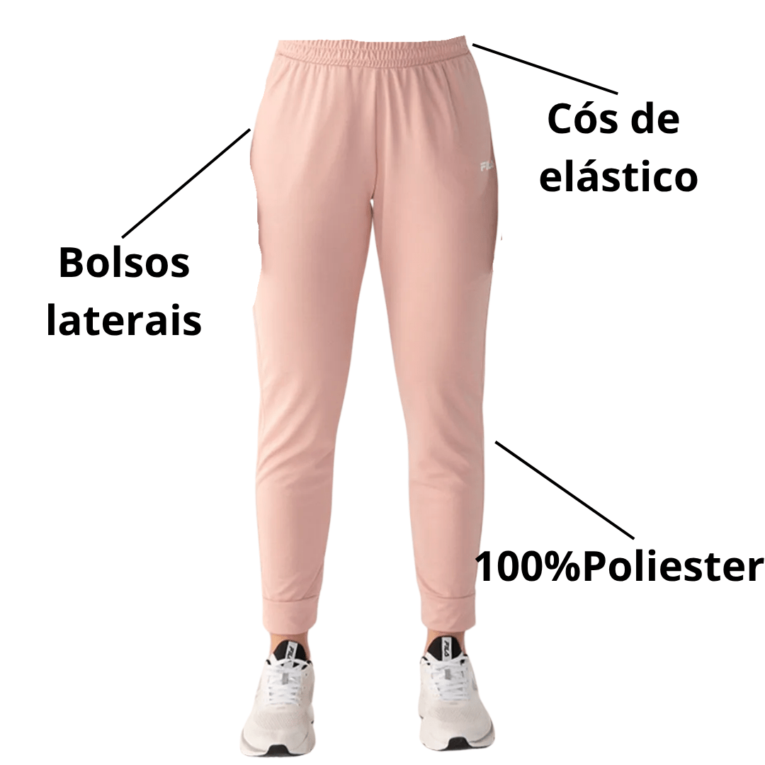 Modelagem: Jogger, com elástico na cintura e nos tornozelos, garantindo melhor ajuste ao corpo.