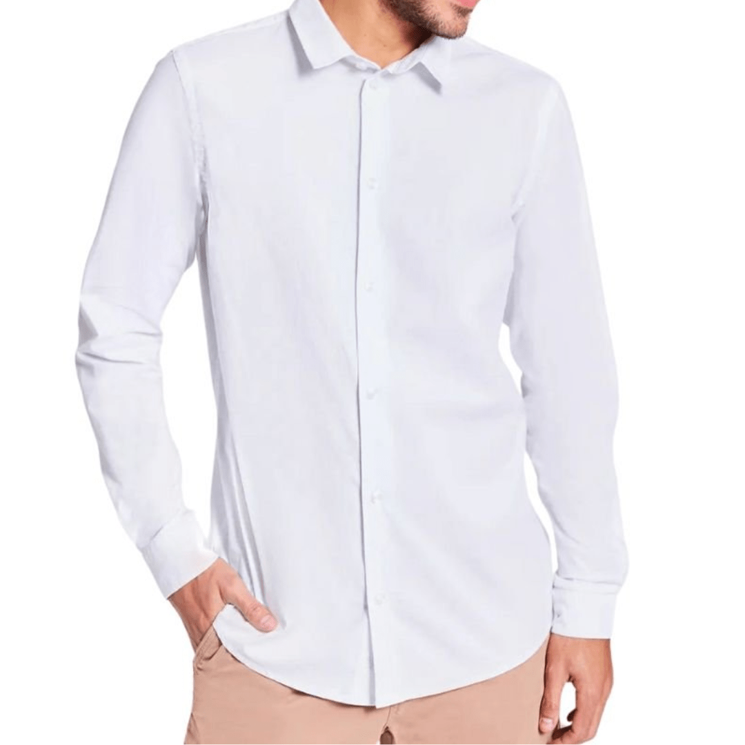 Camisa Básica Masculina Tricoline Manga Longa Branco