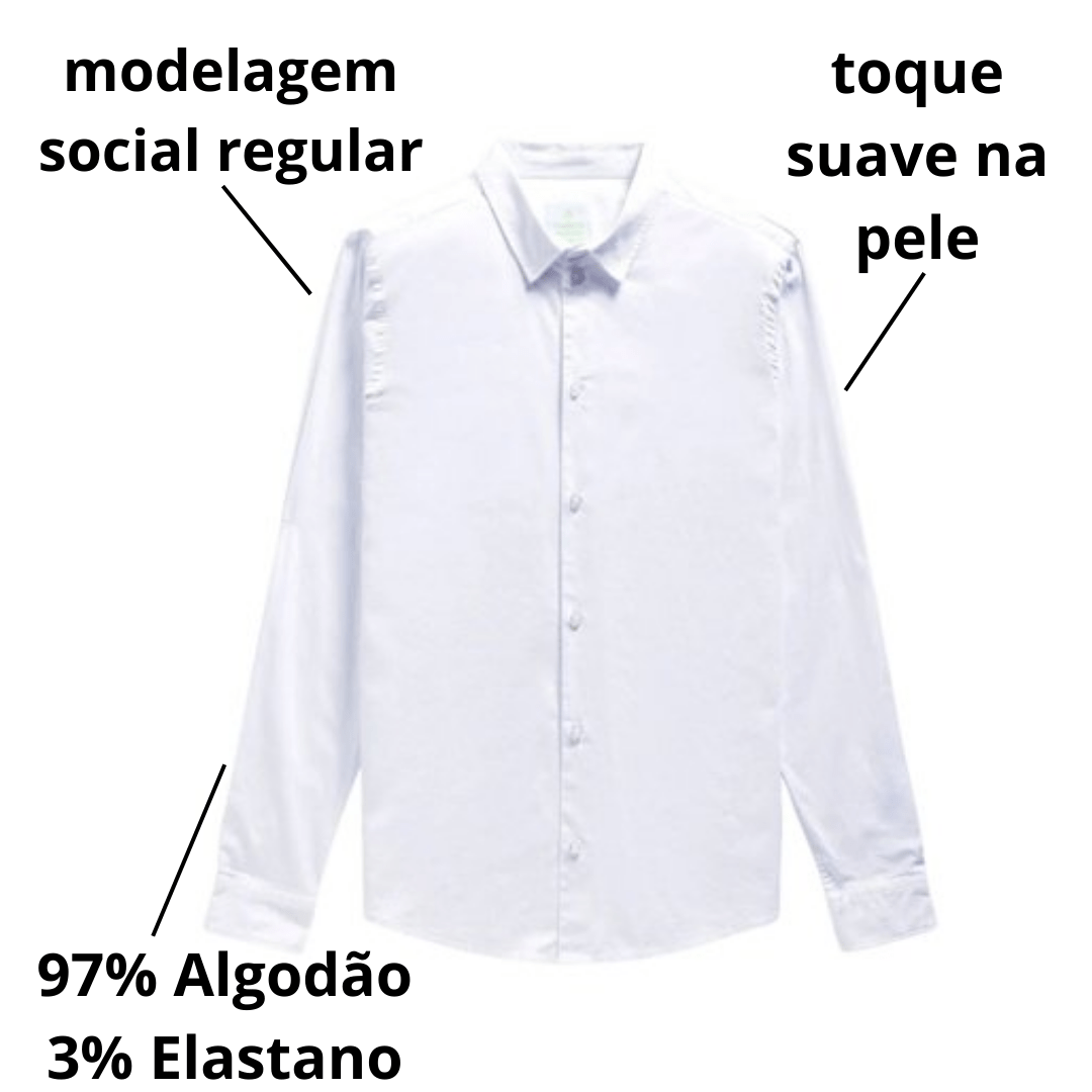 Produto: Camisa Básica Masculina Tricoline Manga Longa Branco