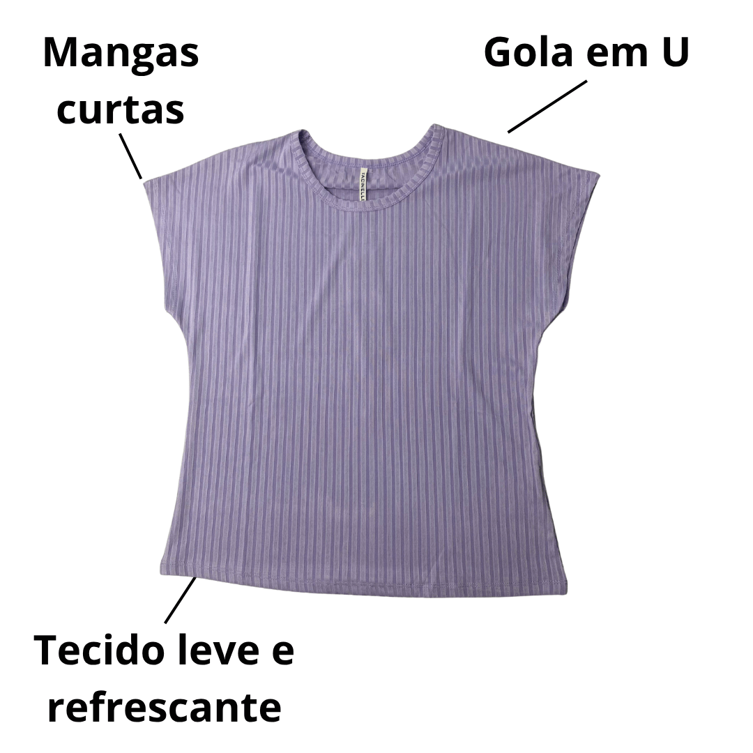 Versátil e fácil de combinar com calças, shorts ou saias.