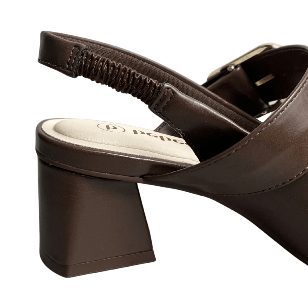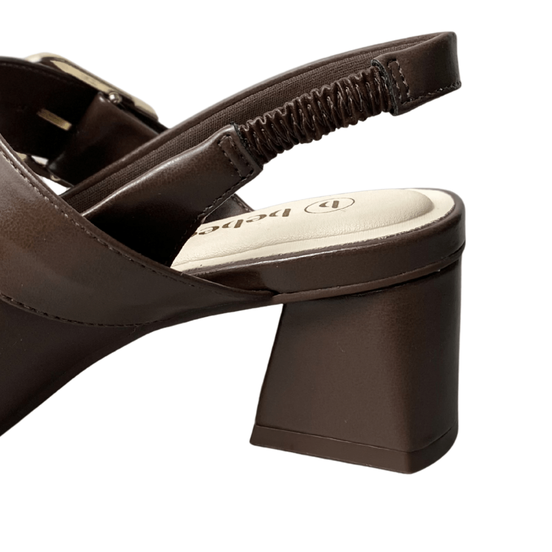 Salto: Tipo bloco médio/baixo, proporcionando equilíbrio e elegância.