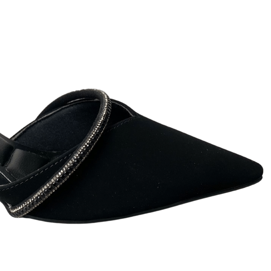 Toque de Glamour: A tira cravejada sobre o peito do pé adiciona um ponto de luz ao visual, dispensando acessórios pesados.