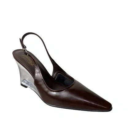 Design Inovador: O salto anabela transparente é uma forte tendência que adiciona um toque futurista e leve ao visual, destacando-se de modelos convencionais.