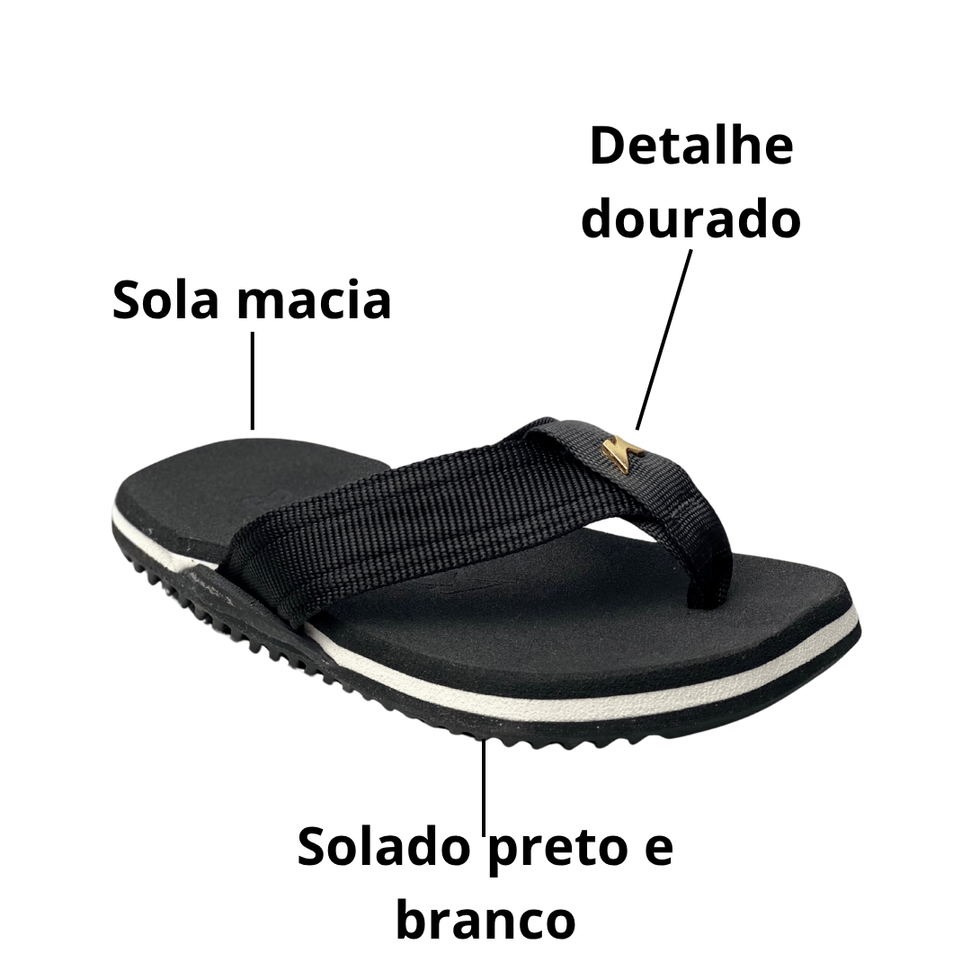 Material: Tira em tecido resistente e confortável, que não machuca os pés.