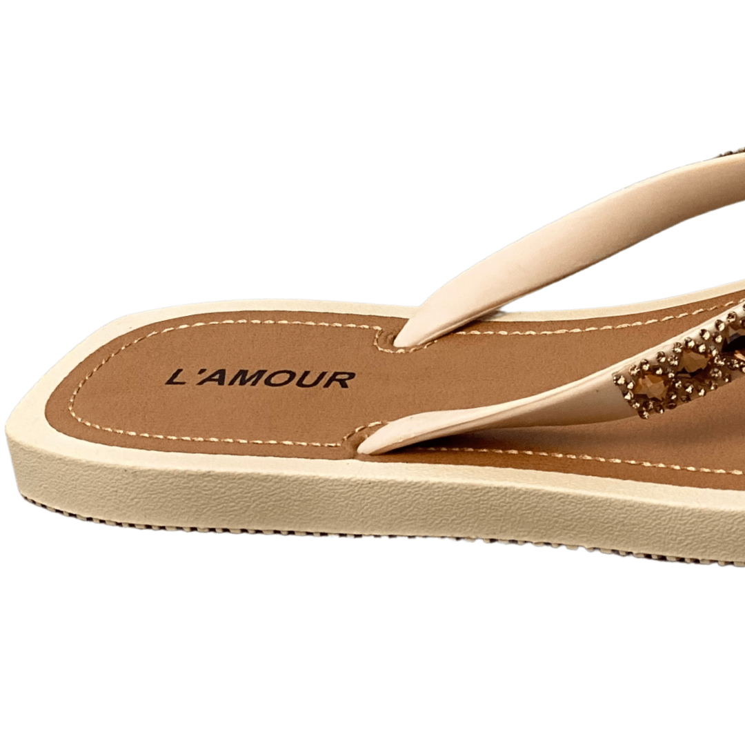 Chinelo L’amour Feminina Bege com Tira Cravejada