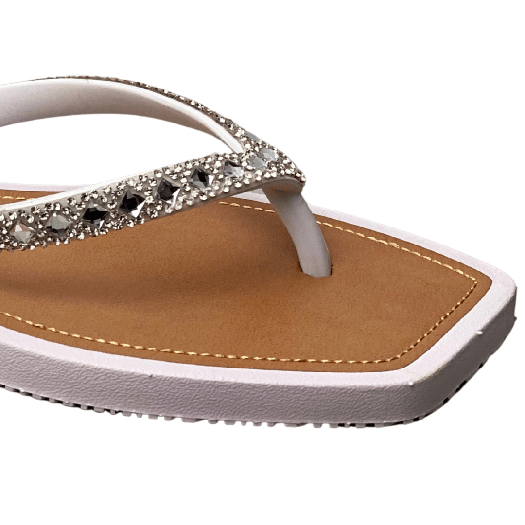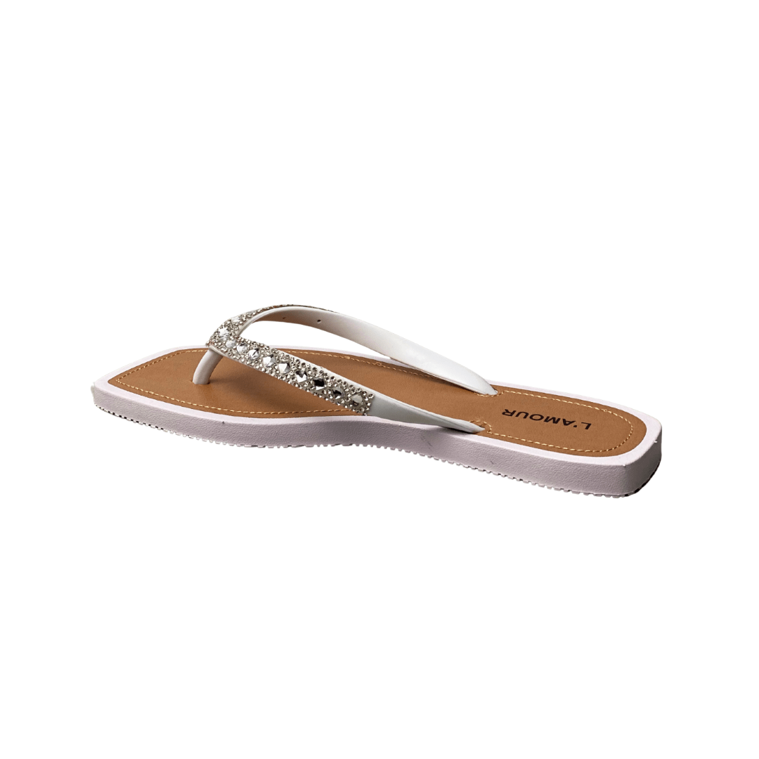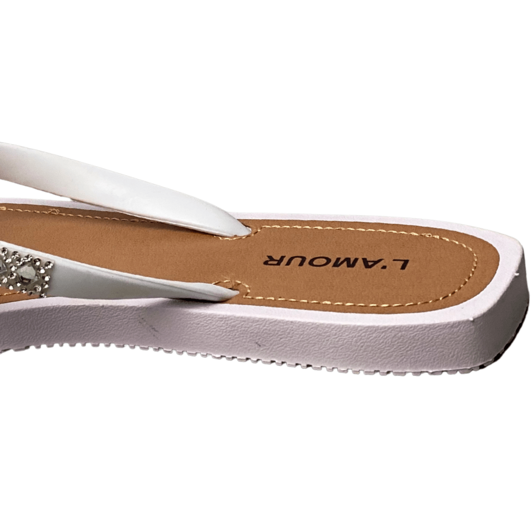 Chinelo L’amour Feminina Branco com Tira Cravejada