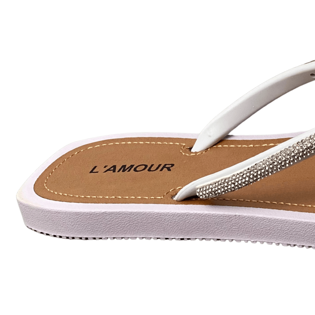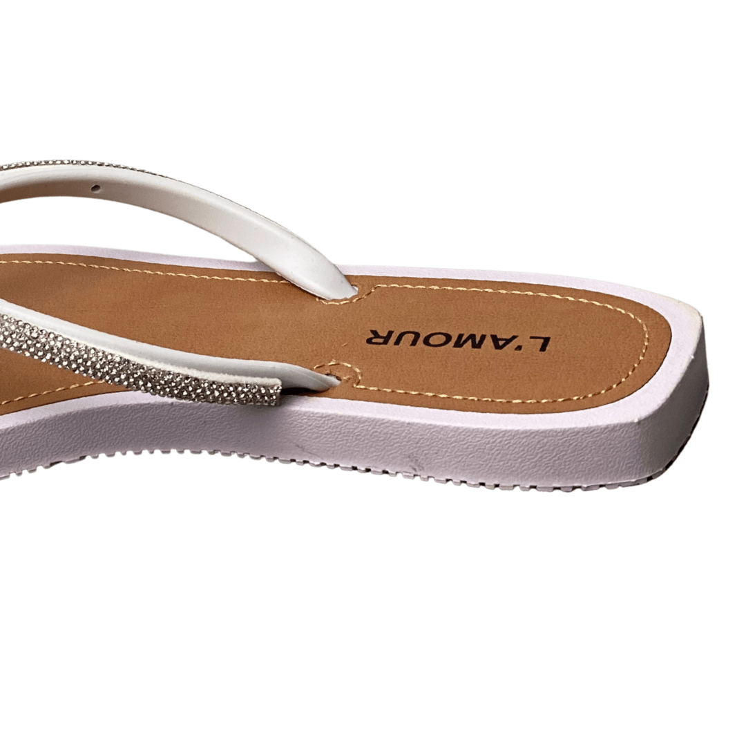 Chinelo L’amour Feminina Branco com Tira Cravejada