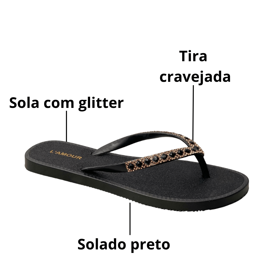 O Chinelo L’amour Feminino Preto Glitter é a escolha ideal para quem busca conforto, estilo e um toque de brilho no dia a dia.