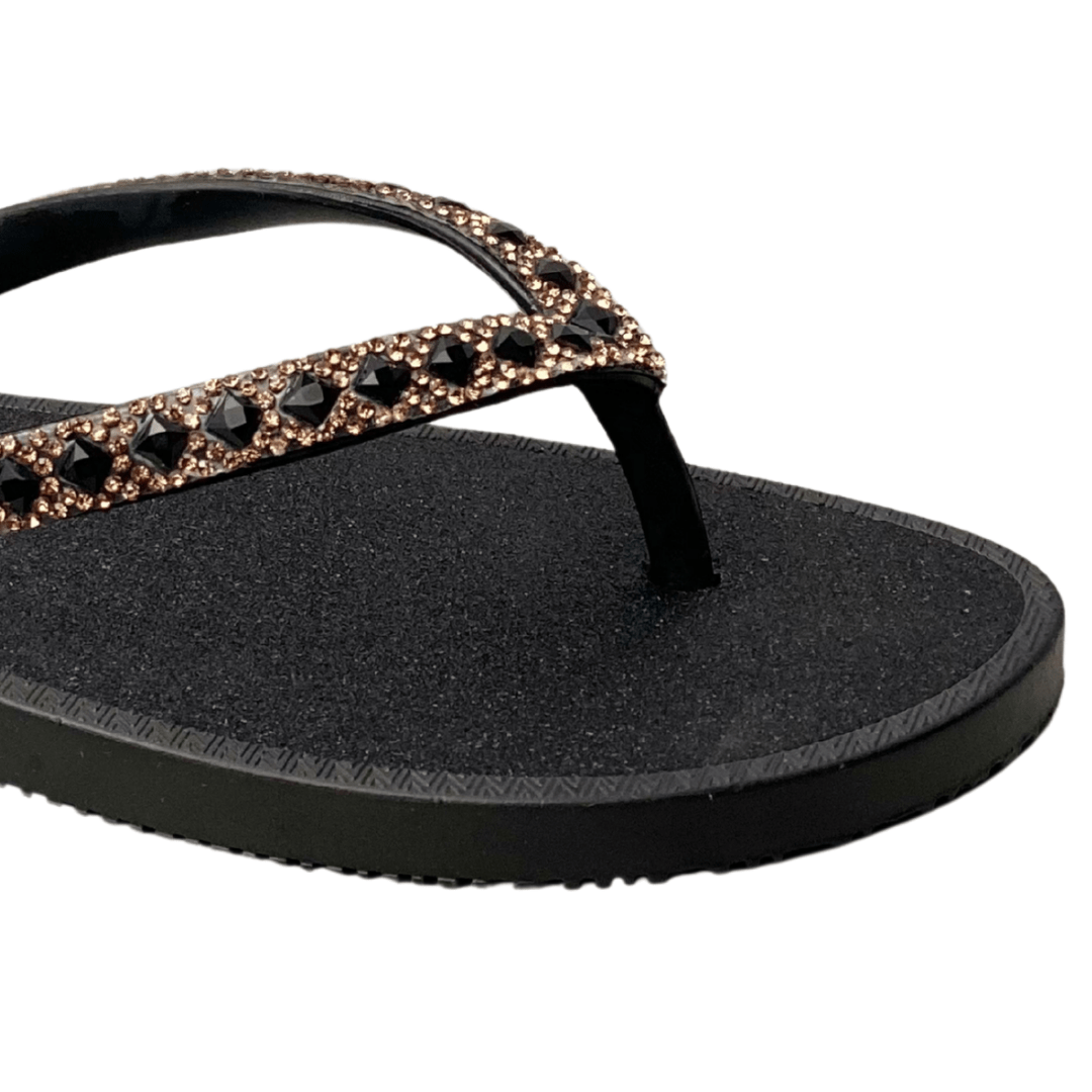 Detalhes: Acabamento com glitter e tira fina cravejada