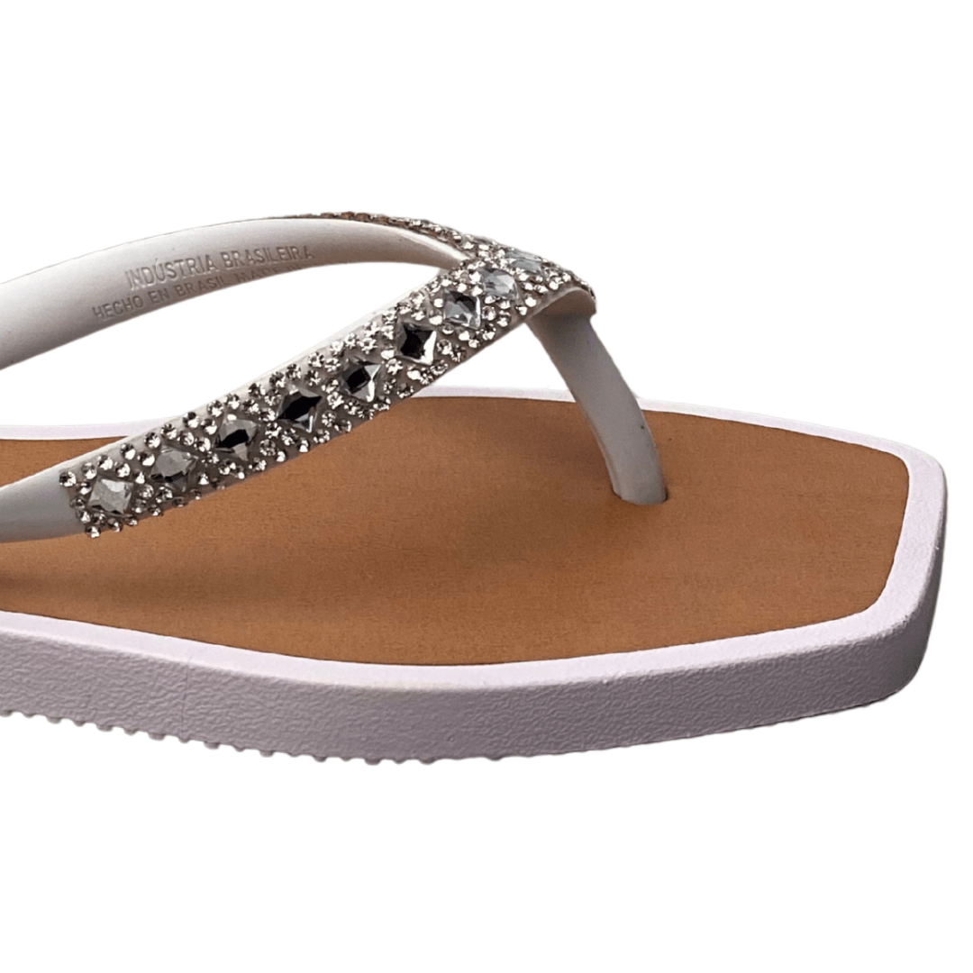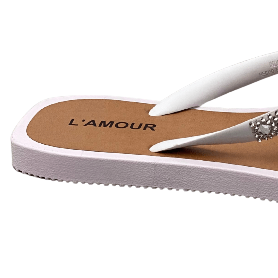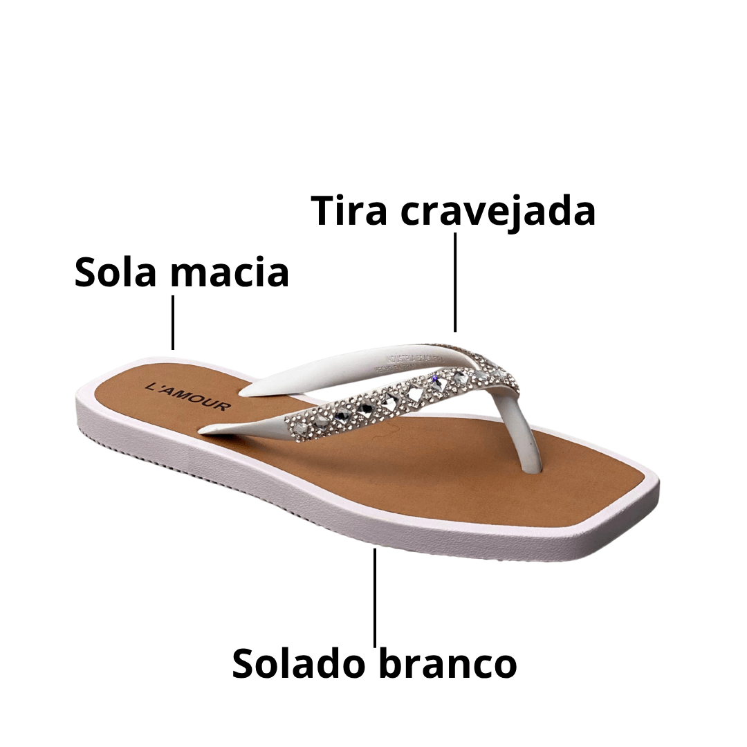 Chinelo L’Amour Infantil Feminino Branco Tira Cravejada
