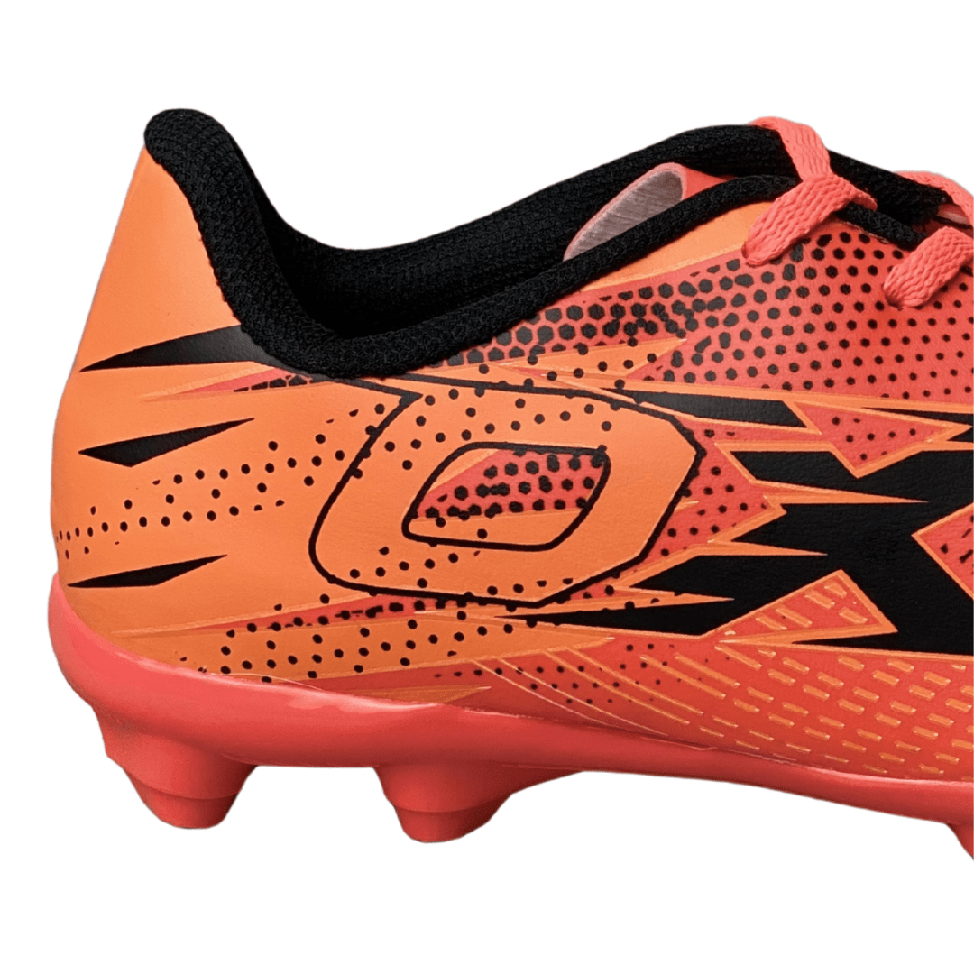 A Chuteira Oxn destaca-se por sua cor coral vibrante, garantindo que o pequeno jogador tenha total destaque em campo. Seu design aerodinâmico e o solado com cravos estratégicos foram projetados para oferecer o máximo de "conforto e estilo" durante as partidas de futebol de campo.