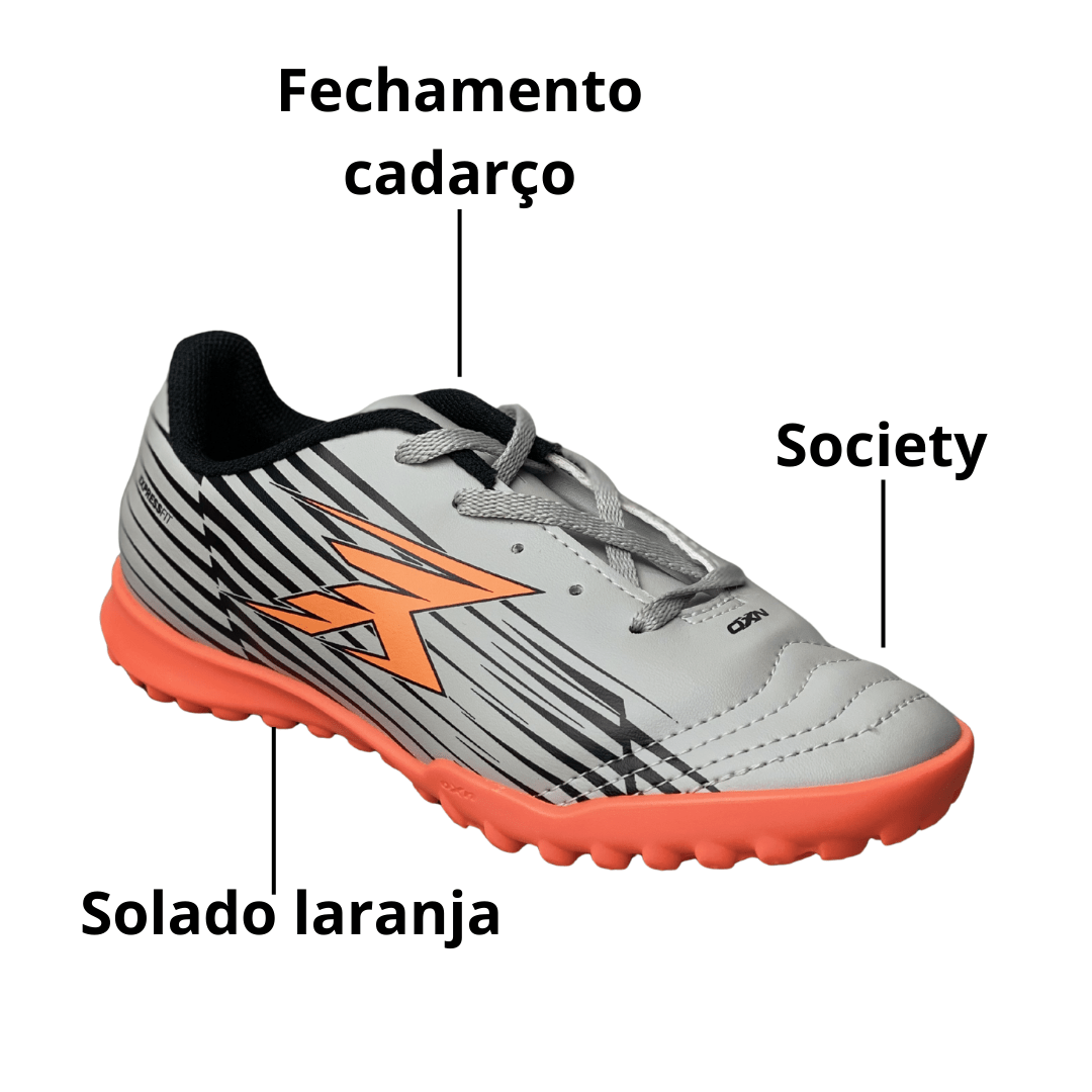 A Chuteira Oxn Infantil Society na cor Gelo é a escolha ideal para crianças que buscam um visual diferenciado e "clean" nos gramados sintéticos. Com um design tecnológico e detalhes em contraste, ela oferece a leveza e a tração que os pequenos atletas precisam para brilhar com segurança e muito estilo em cada partida.