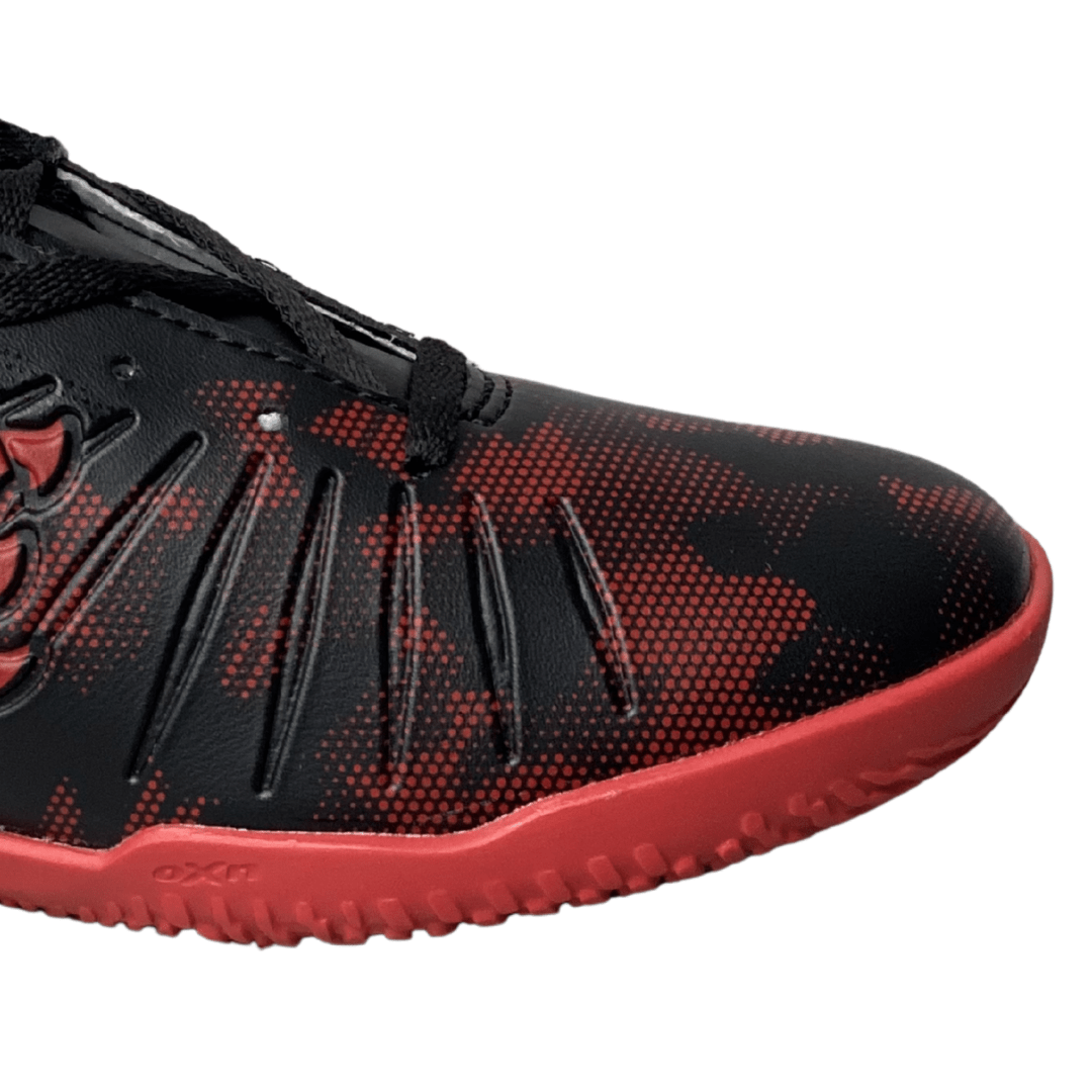 Aderência Máxima: O solado de borracha na cor vermelha é desenvolvido especificamente para futsal, oferecendo estabilidade total para giros e arranques sem escorregar.