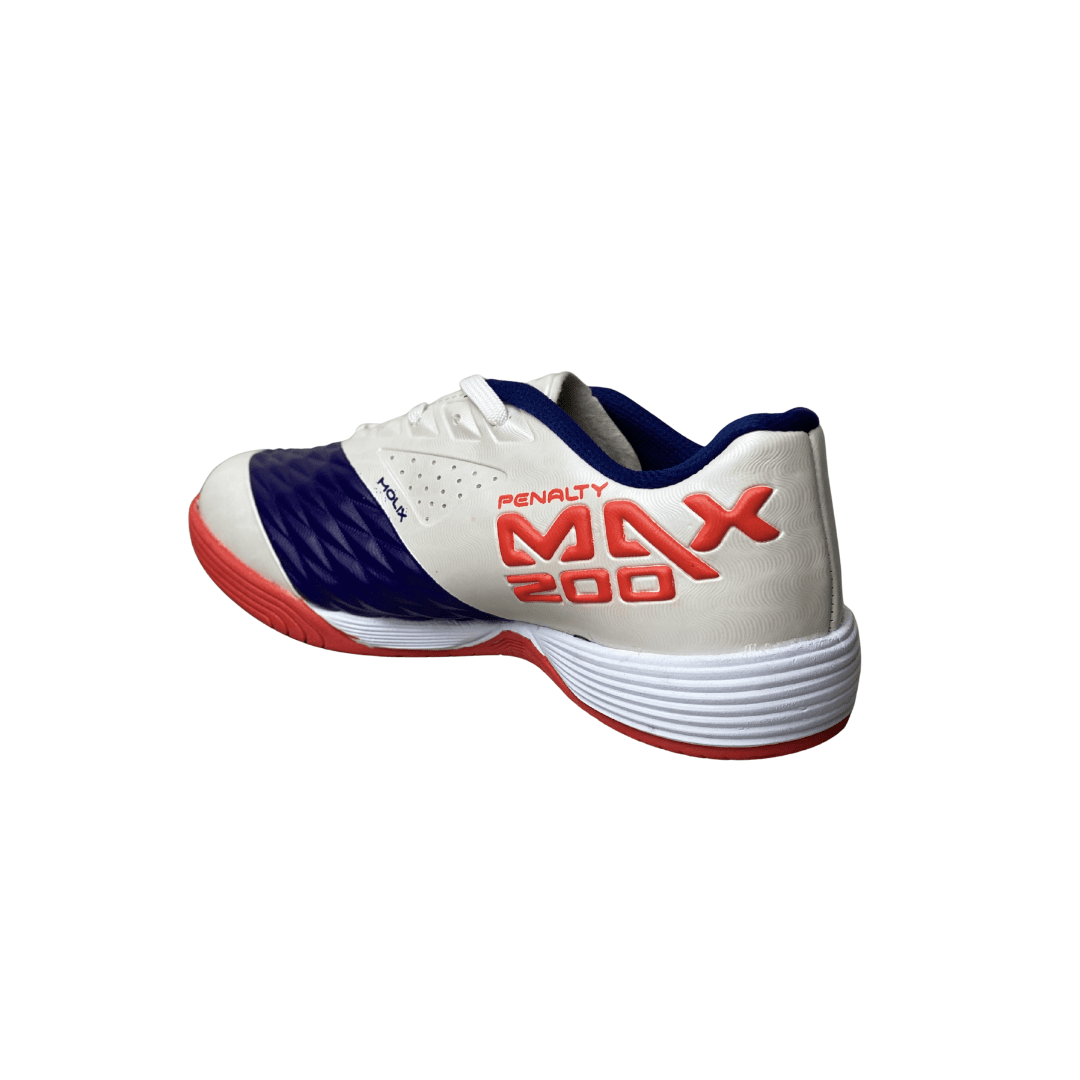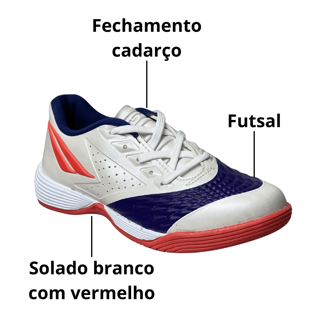 A Chuteira Penalty Infantil é o calçado perfeito para crianças que buscam dominar as quadras com confiança. Combinando um design clean em branco com detalhes vibrantes em azul e laranja, ela oferece a durabilidade necessária para o ritmo intenso das partidas infantis, garantindo conforto do primeiro ao último minuto de jogo.