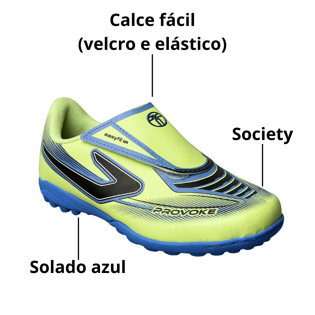 A Chuteira Topper Provoke foi desenvolvida para transformar o jogo dos pequenos em uma experiência de pura diversão e performance. Com um design futurista em verde limão e tecnologias que priorizam a facilidade no calce e a estabilidade, este modelo é perfeito para garantir que a única preocupação da criança seja marcar o próximo gol.