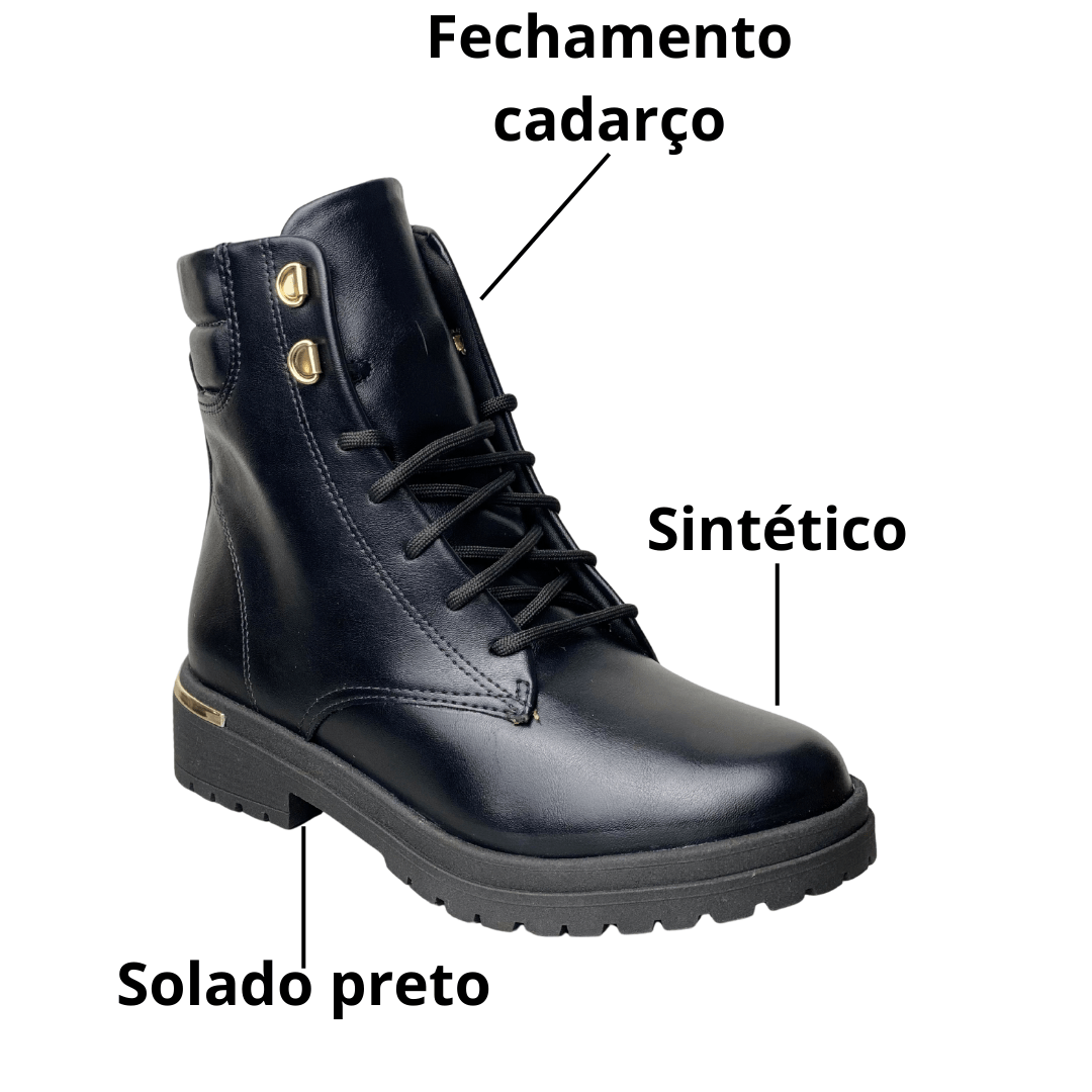 Solado: Estilo tratorado robusto em cor preta, garantindo durabilidade e um visual moderno.