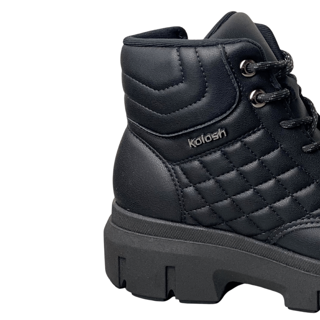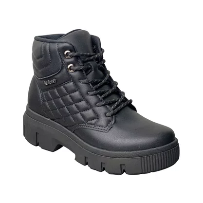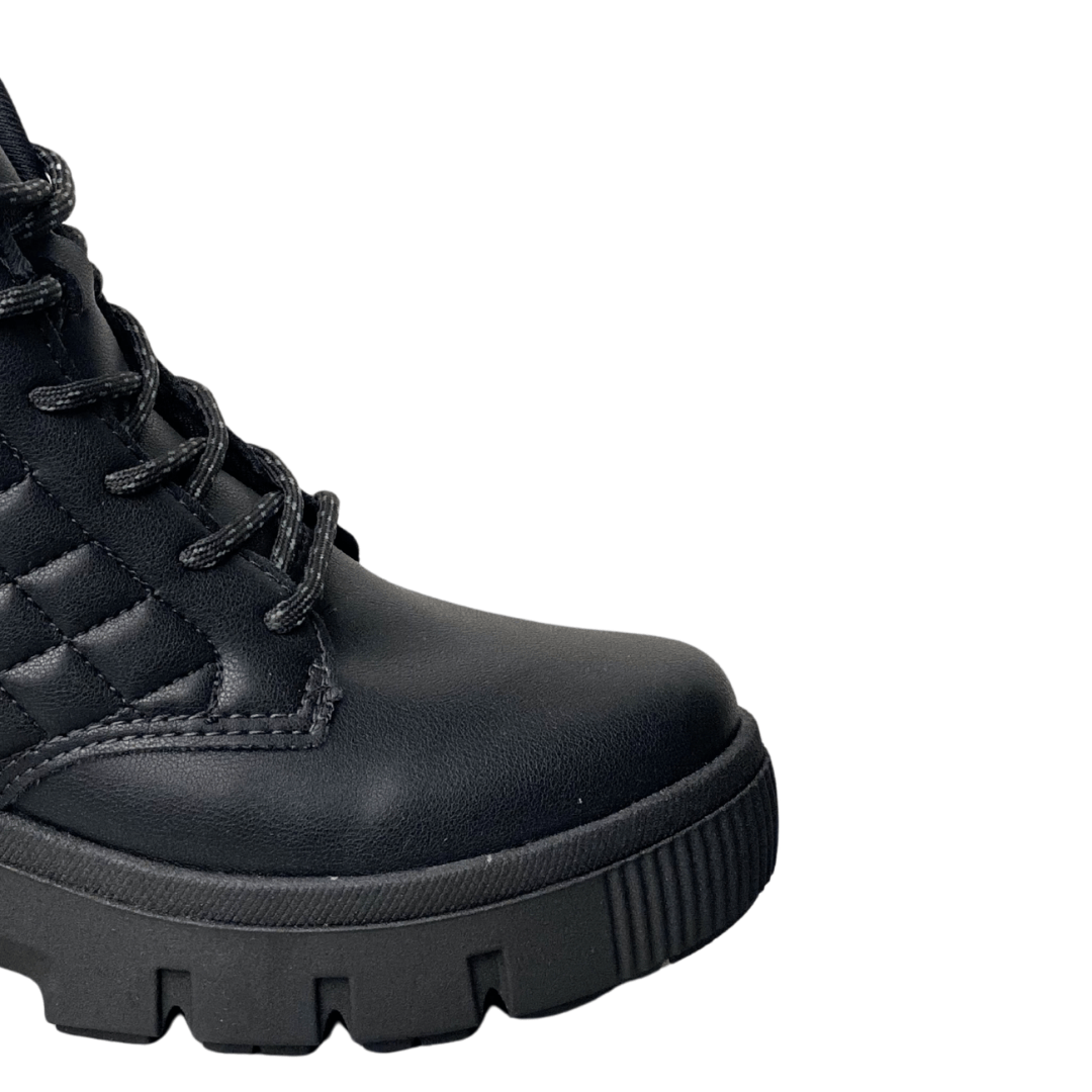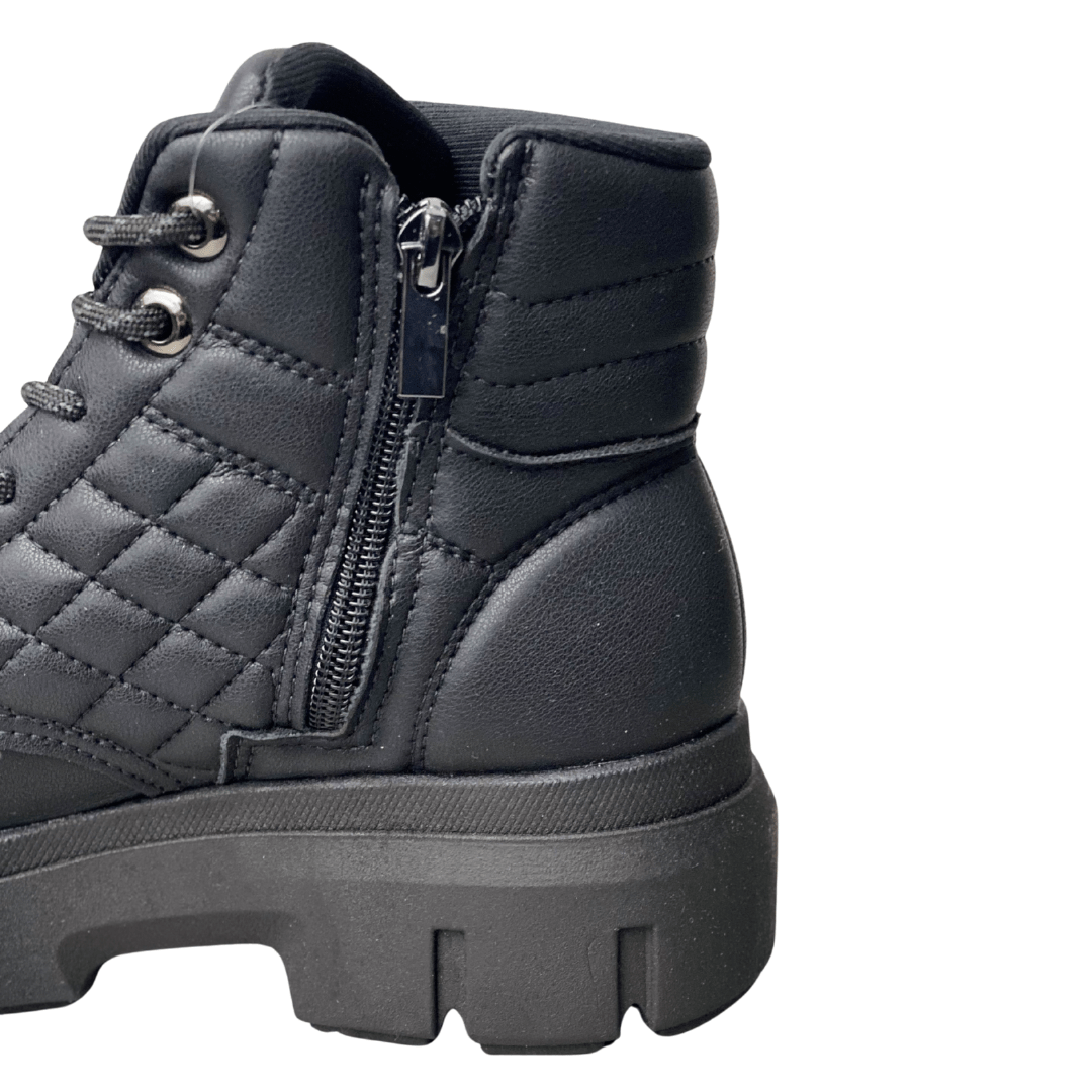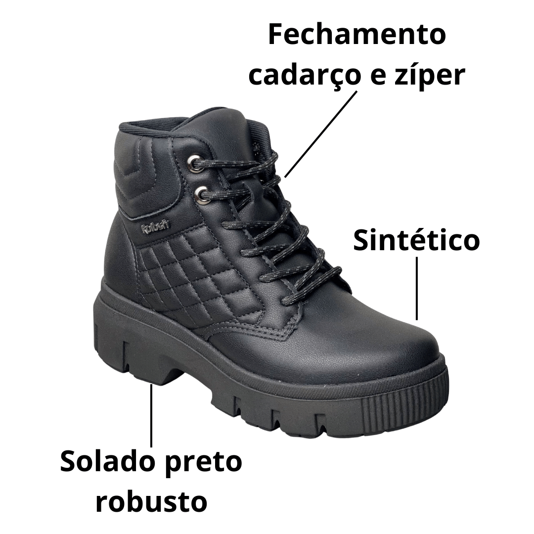 Design Matelassê: O detalhe em costuras geométricas (matelassê) na lateral eleva o visual do coturno, adicionando um toque de sofisticação ao estilo esportivo.