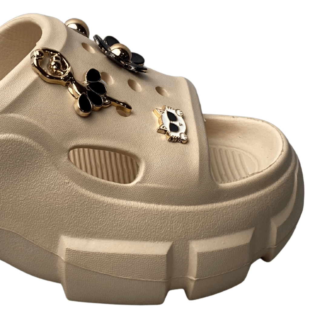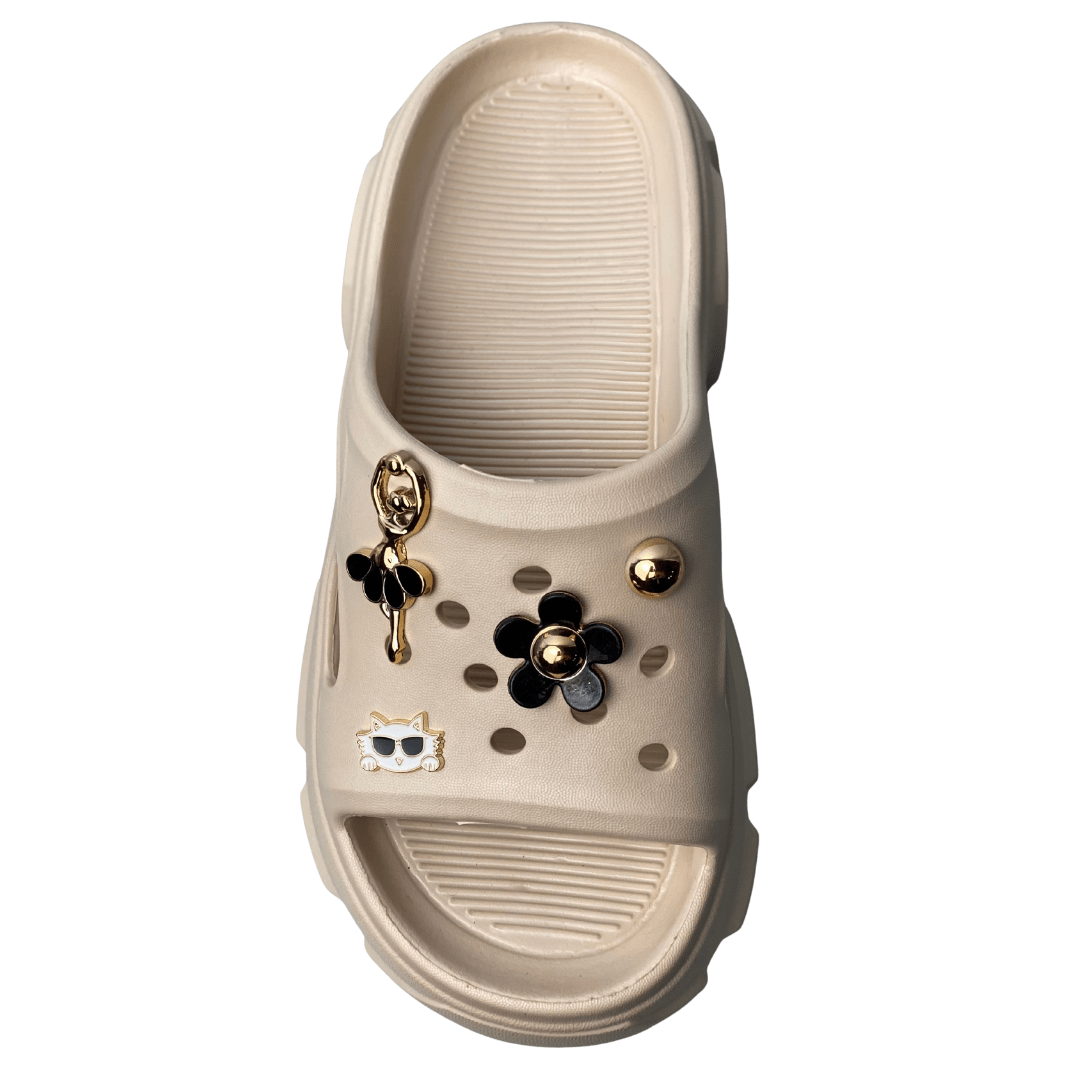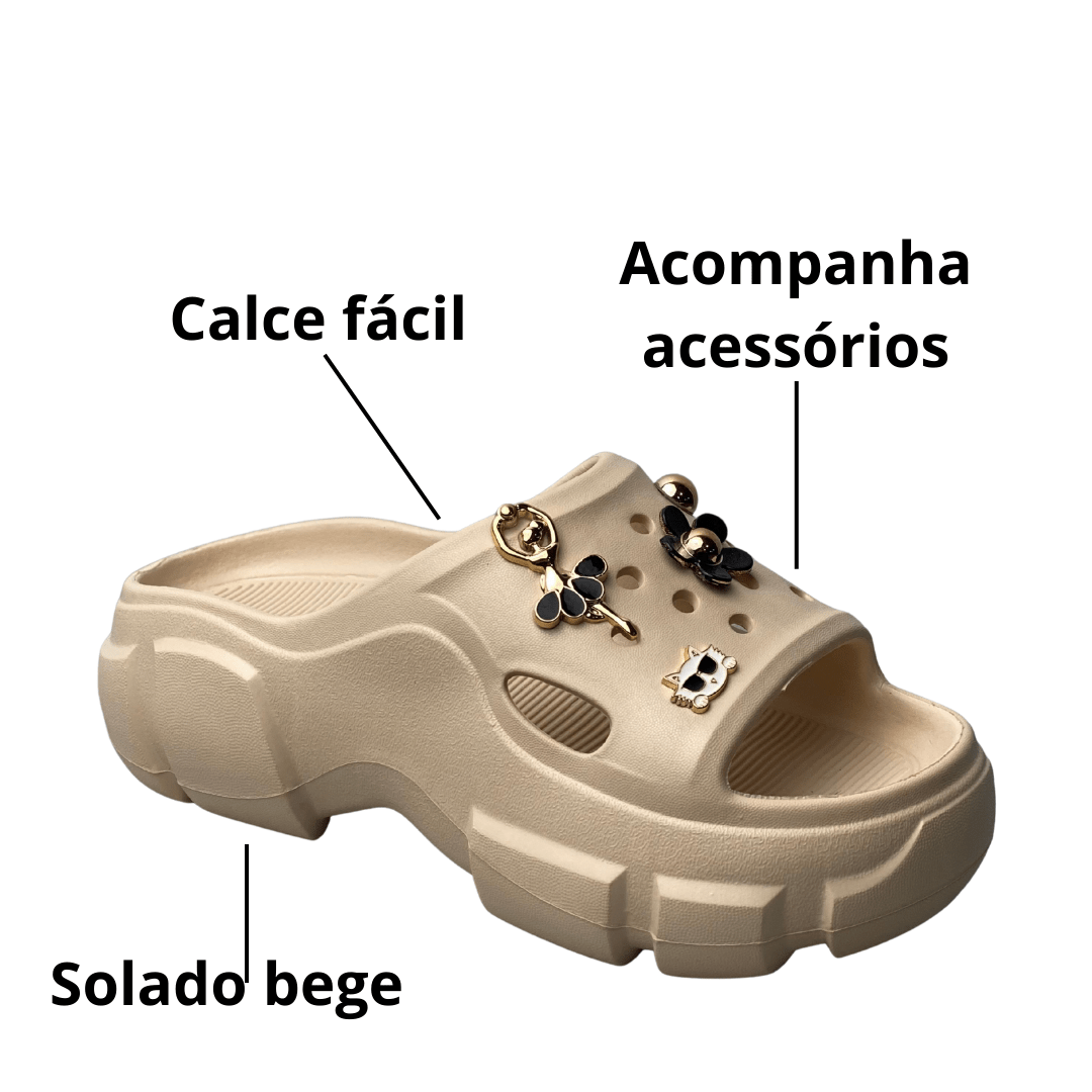 Crocs Aberto Yvate Feminino Bege Acompanha Acessórios