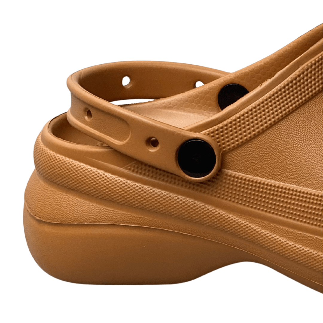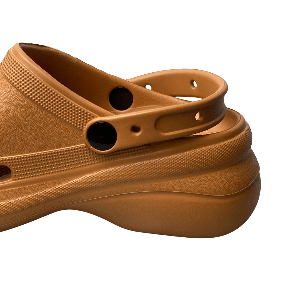 Cor e Material: Confeccionado em material injetado leve (similar a EVA/borracha) na cor Caramelo, com superfície fosca.