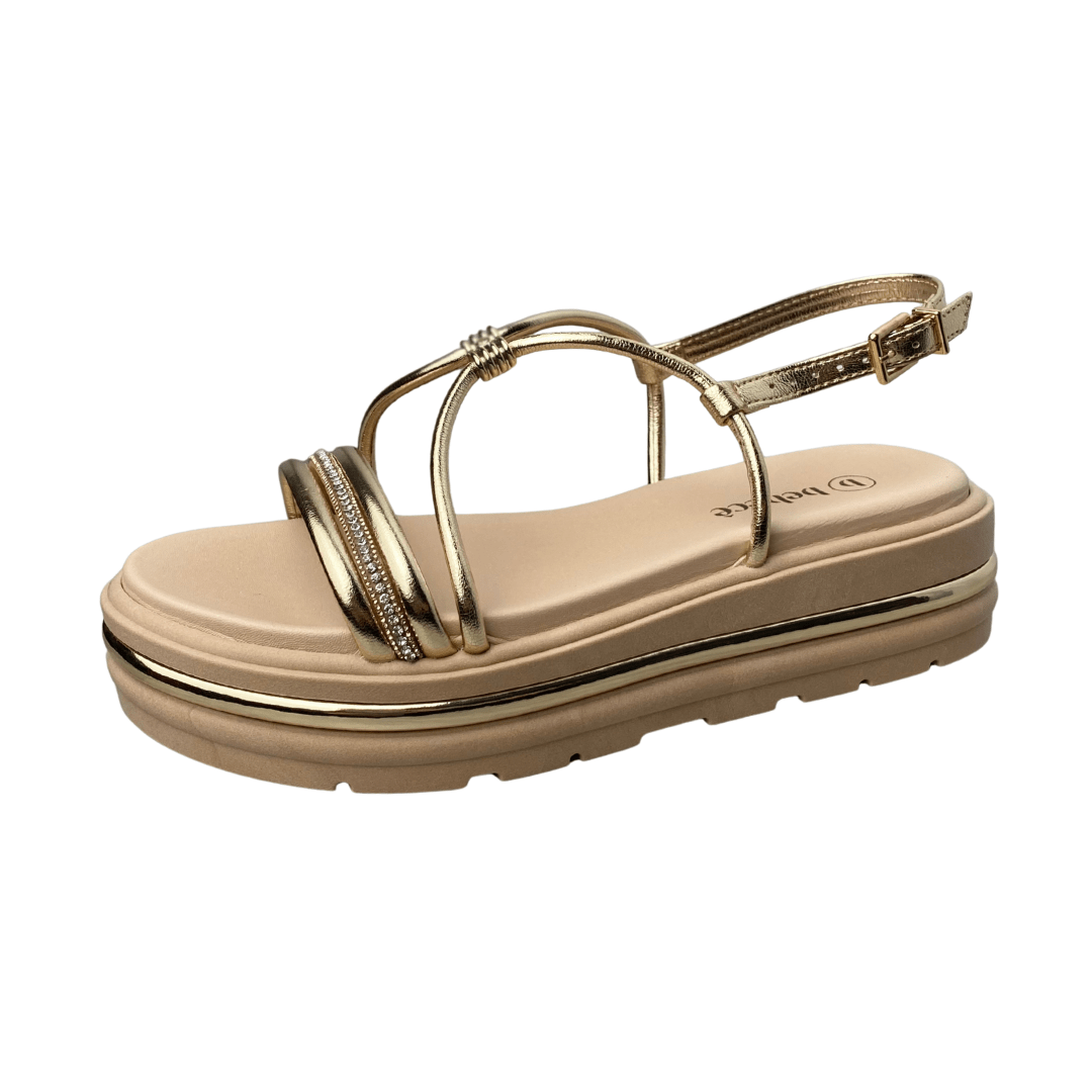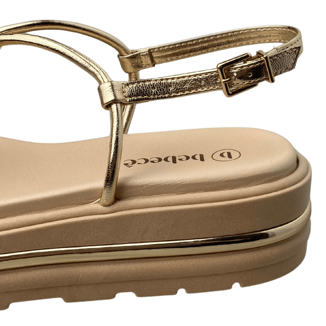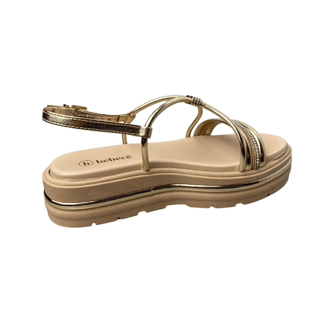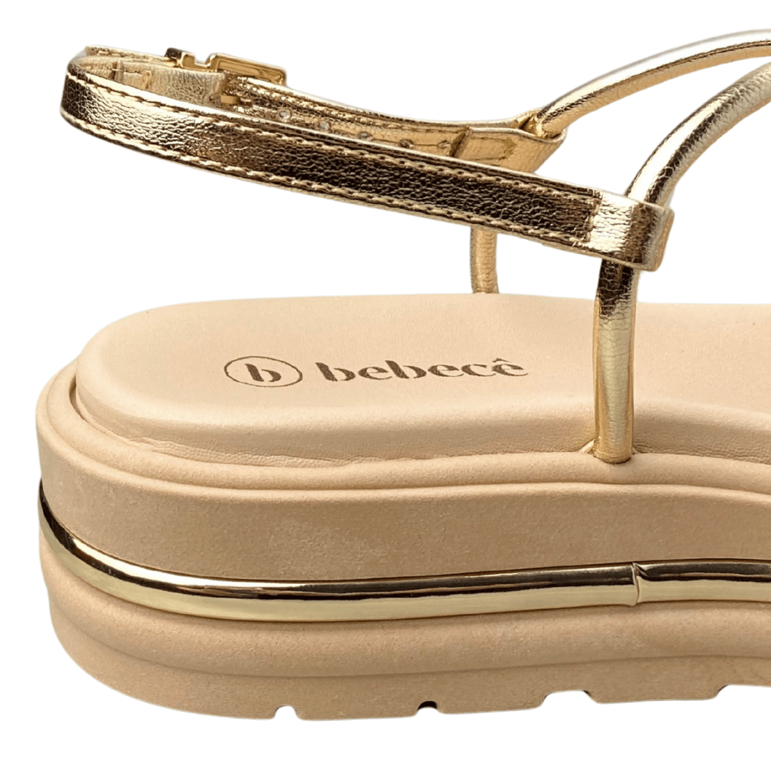 Flat Bebecê Feminina Dourada com Tira Cravejada