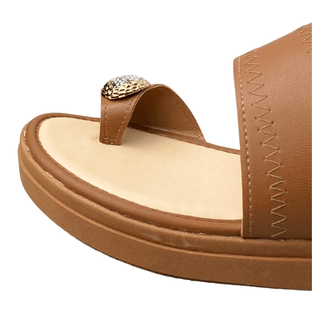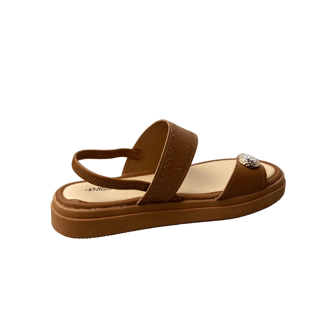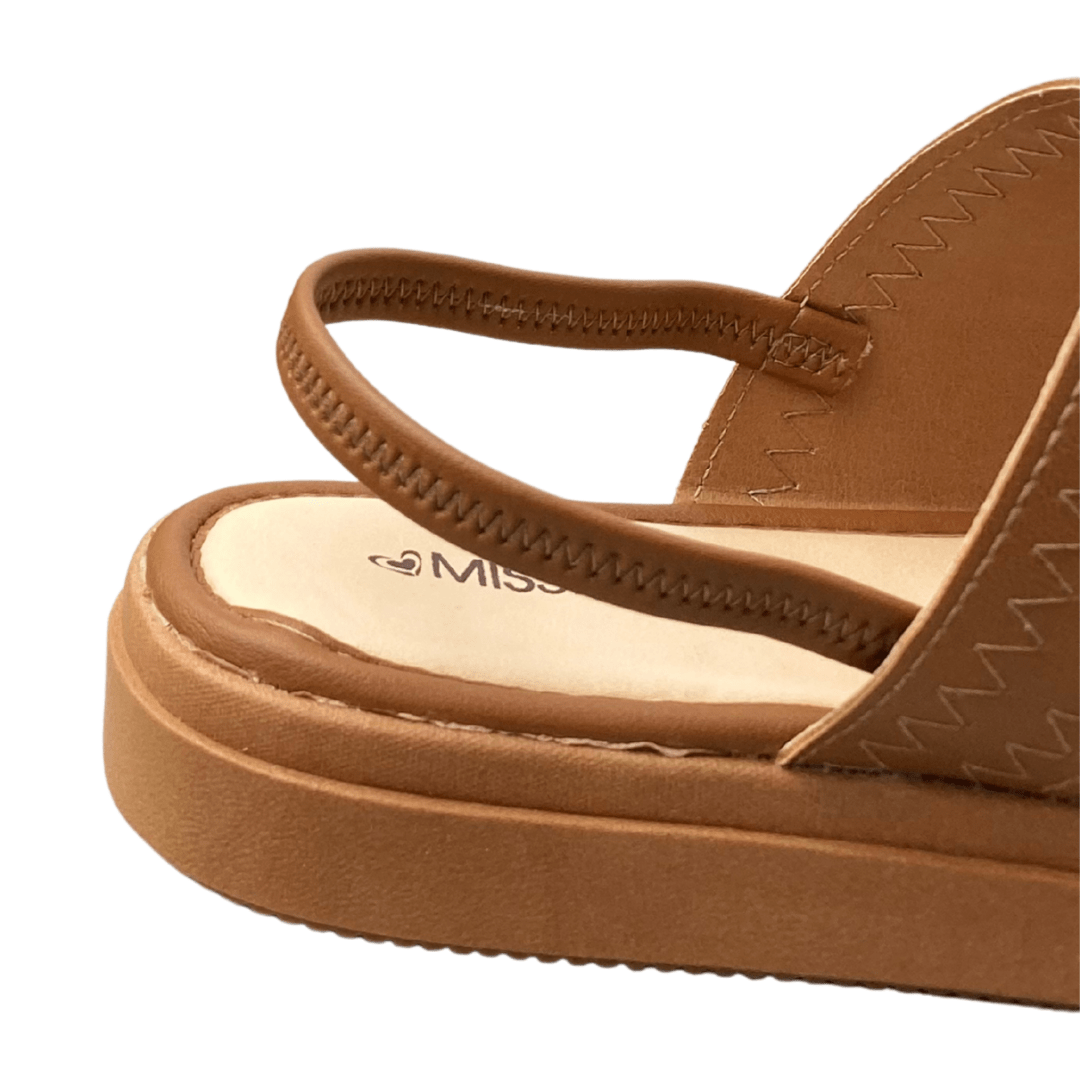 Detalhe em ferragem no cabedal, adicionando charme especial.