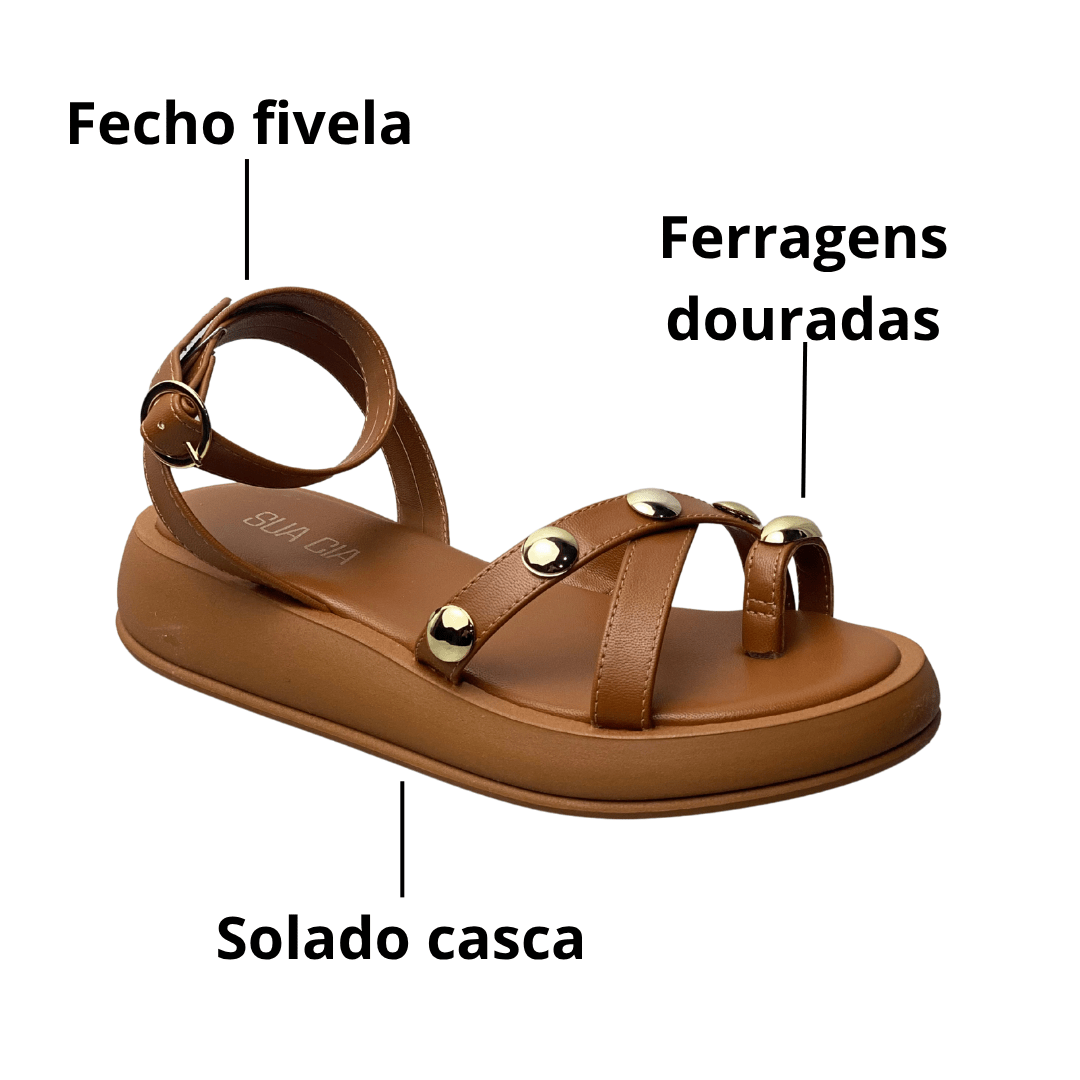 Combine a Flat Sua Cia Casca com vestidos, saias, shorts ou calças leves. Ideal para dias quentes, oferece conforto para caminhar com estilo do trabalho ao lazer.