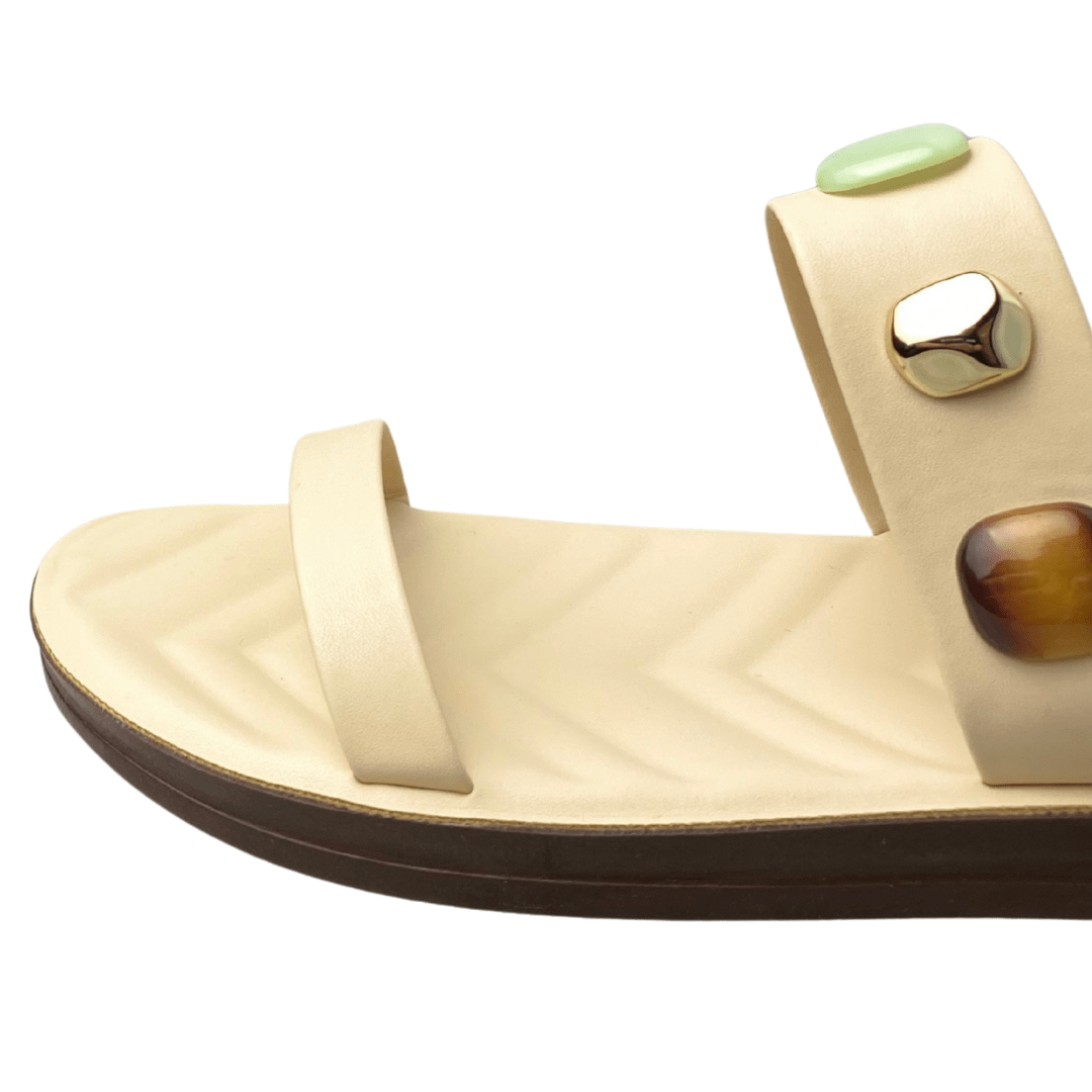 Pedrarias sofisticadas que elevam o estilo do calçado.