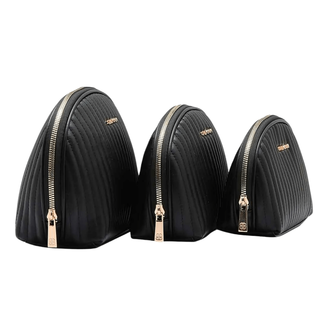 Proteção de Itens: O material estruturado ajuda a manter o formato das nécessaires, protegendo produtos frágeis contra leves pressões externas.