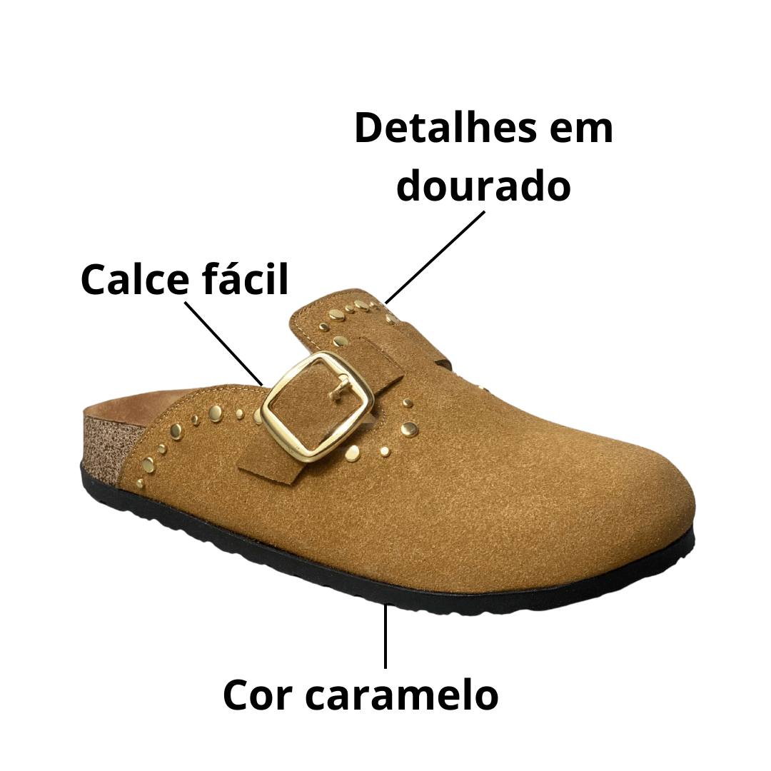 O Mule Beira Rio Feminino Caramelo com Ferragens Douradas é "estiloso e lindo", trazendo uma proposta que mistura a textura suave da camurça com o brilho sofisticado do dourado. Perfeito para quem ama a tendência dos calçados abertos, ele oferece um caminhar leve e cheio de atitude para qualquer momento do dia.