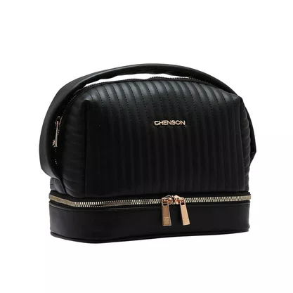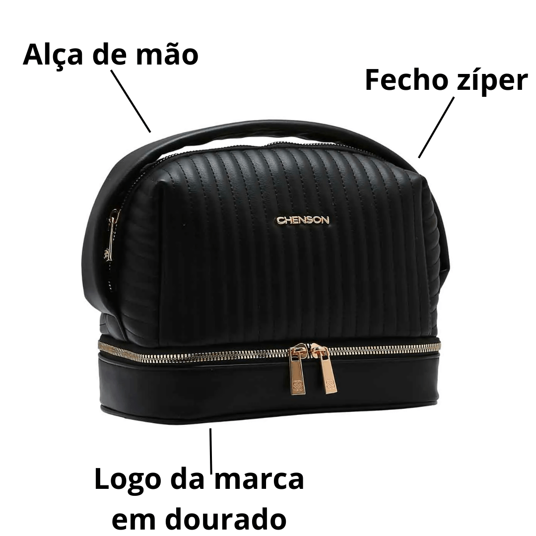 A Necessaire Chenson Preto é a combinação perfeita de funcionalidade e elegância. Desenvolvida para a mulher que não abre mão da praticidade, ela possui uma estrutura rígida e sofisticada, ideal para proteger e organizar seus produtos de beleza, maquiagem e higiene pessoal com a máxima segurança e estilo.