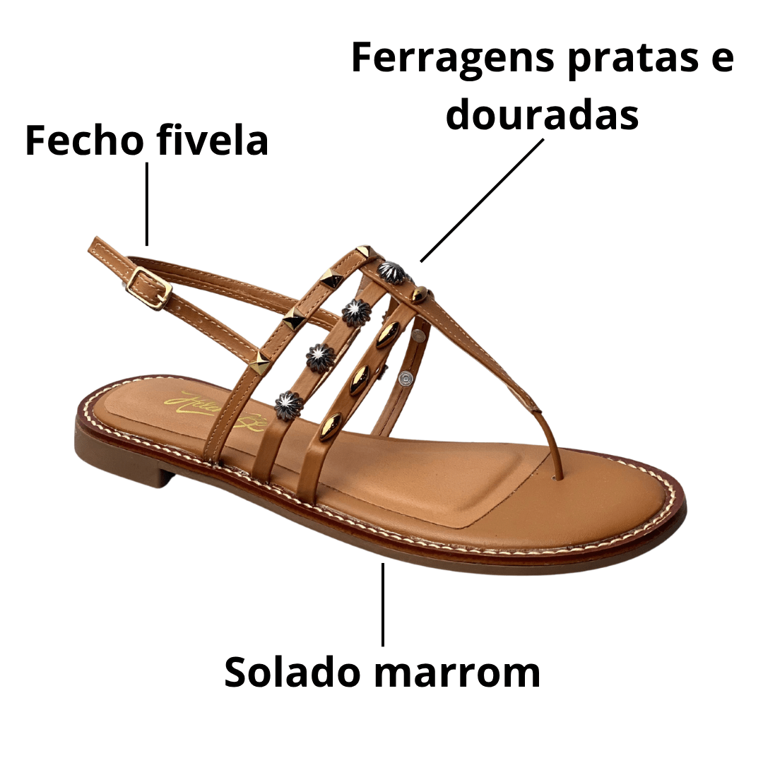 Design delicado e moderno, com tiras finas e detalhes metálicos que valorizam os pés e trazem um toque sofisticado ao visual.