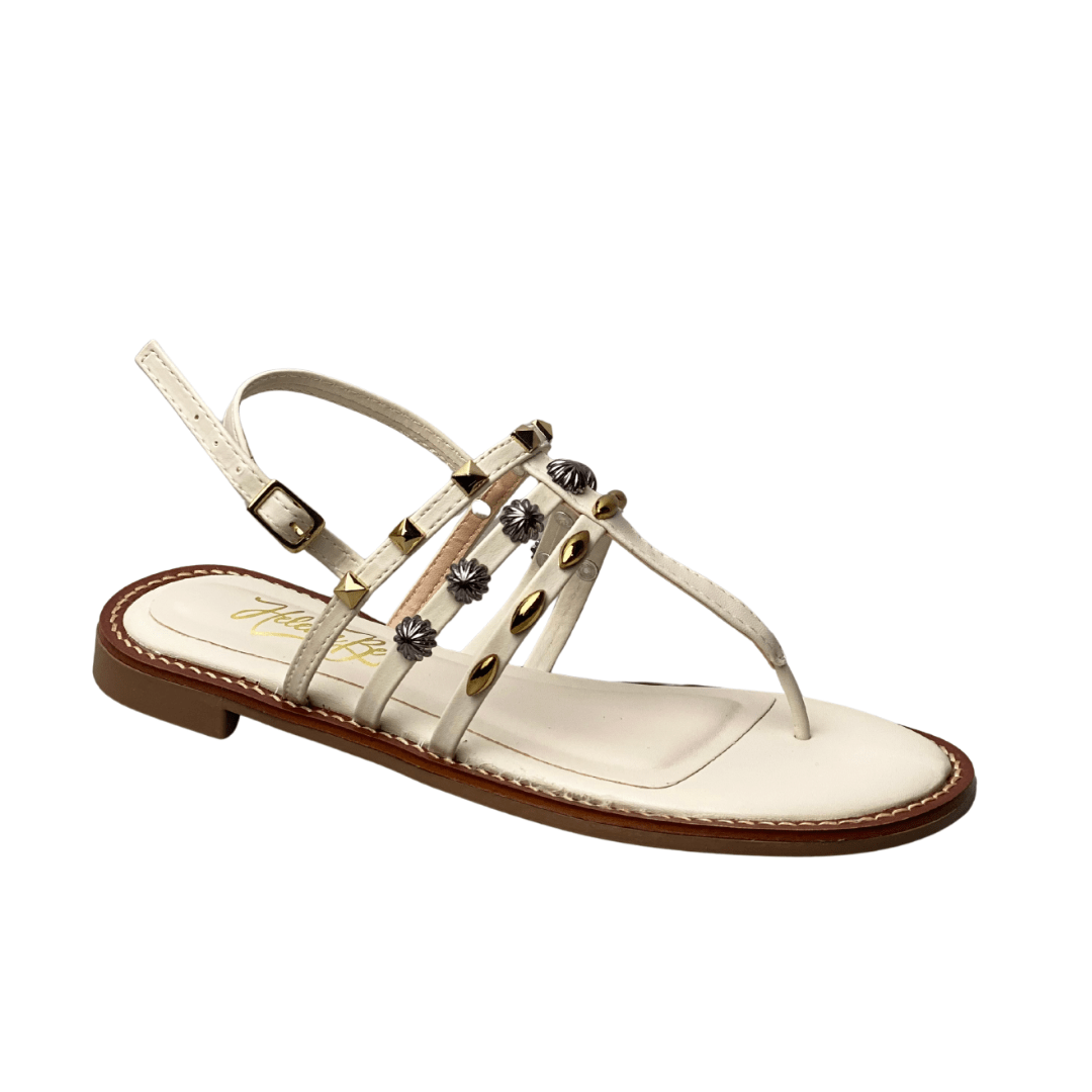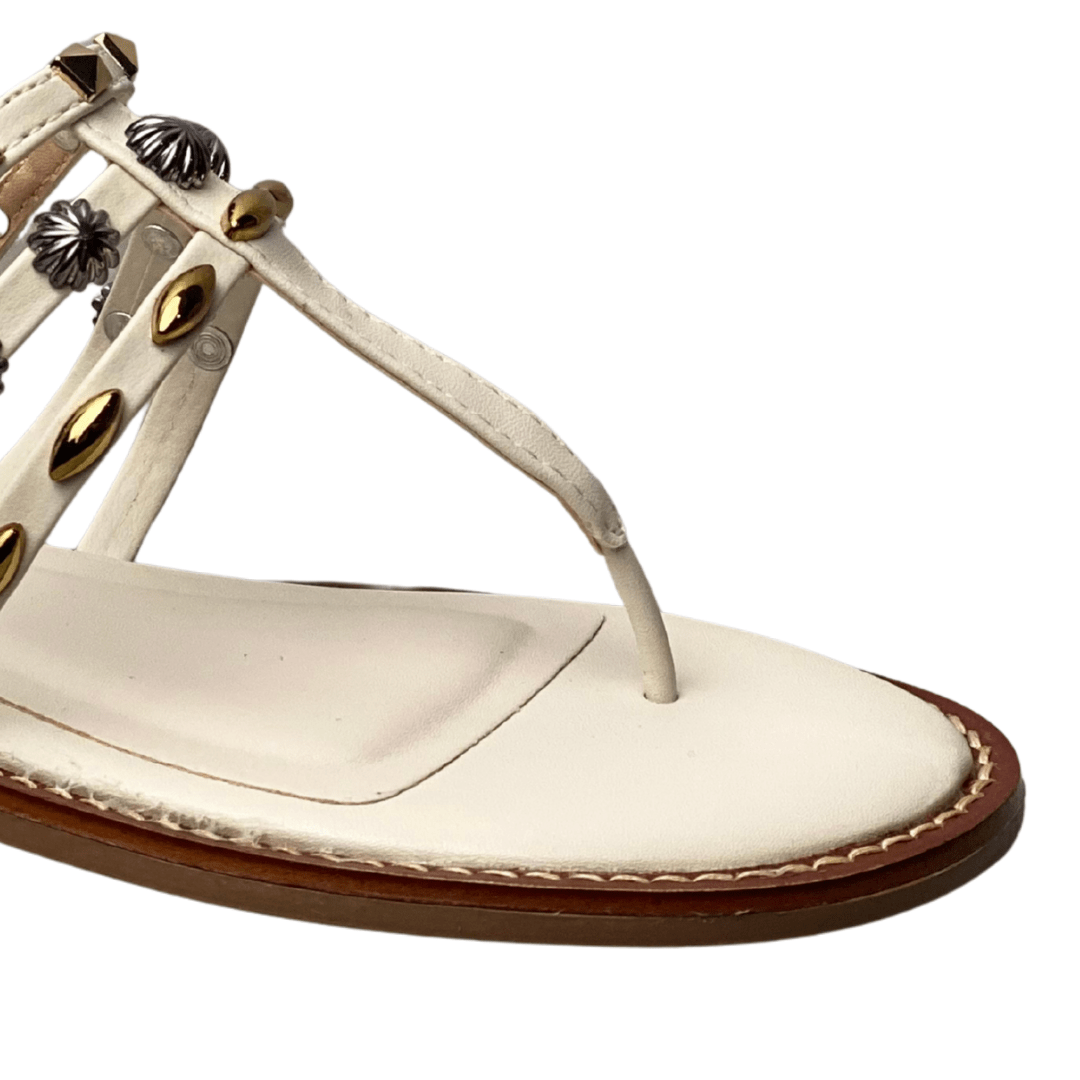 Design delicado e moderno, com tiras finas e detalhes metálicos que valorizam os pés e trazem um toque sofisticado ao visual.