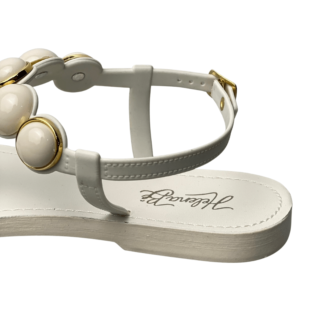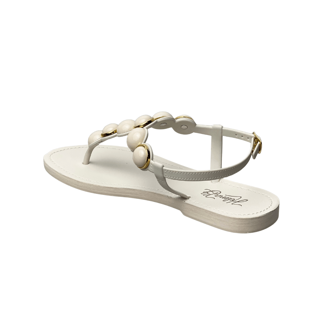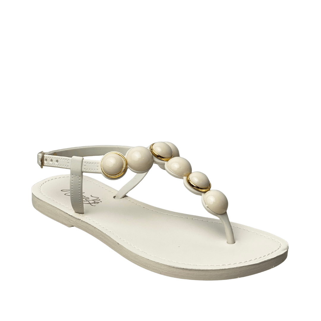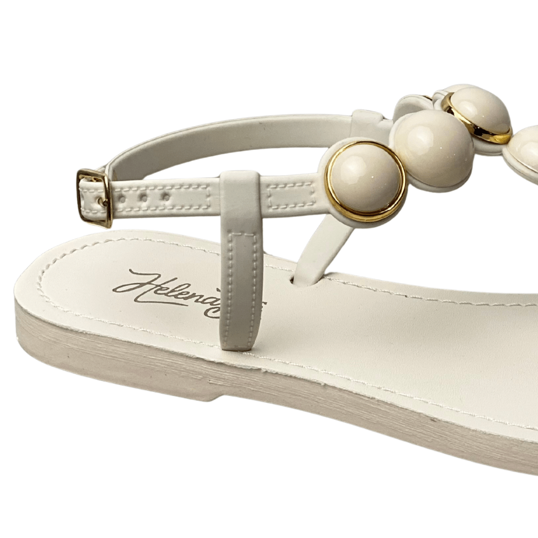 Rasteirinha Helena Be Feminina Off White com Fecho Fivela e Esferas