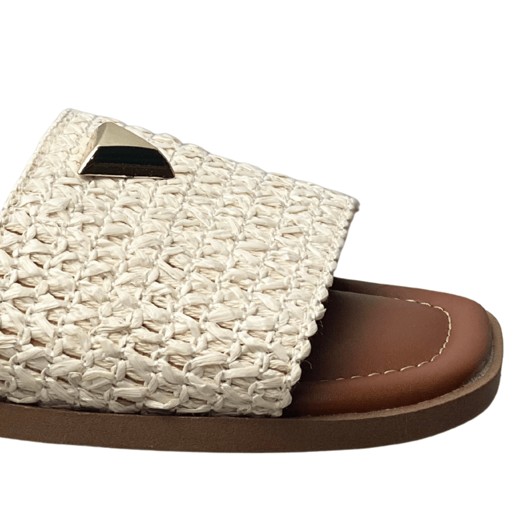 Rasteirinha Slide Helena Be Feminina Off-White em Trama com Detalhe Dourado