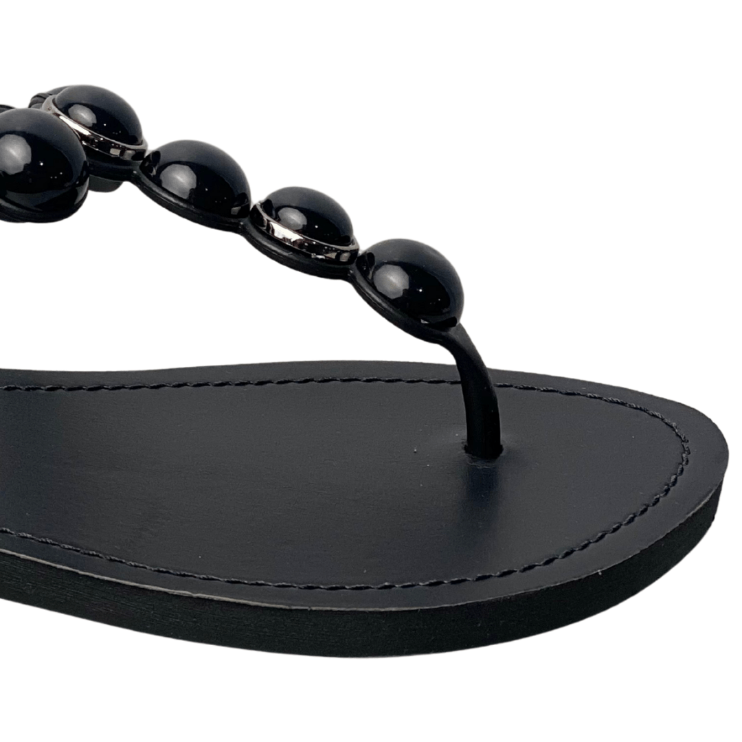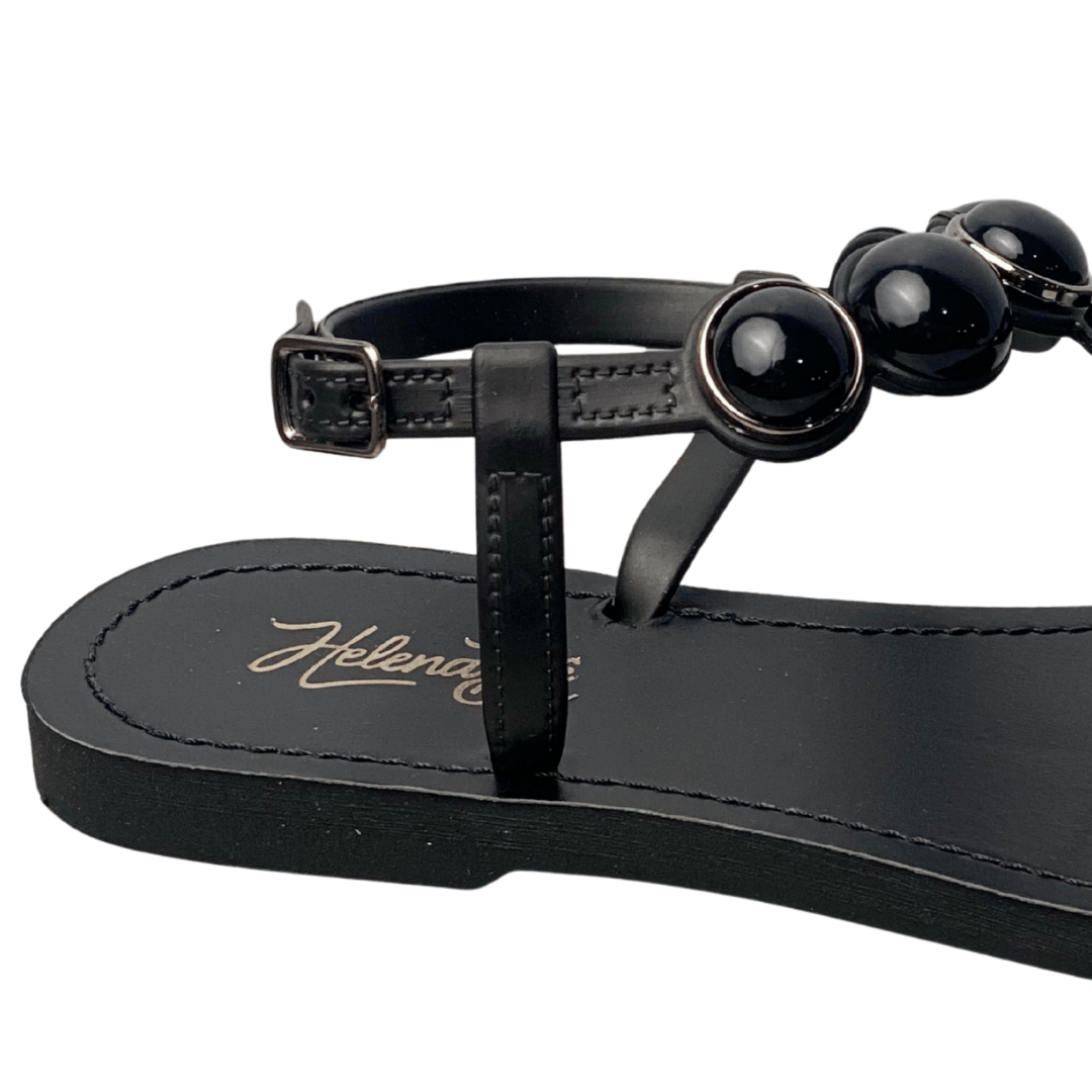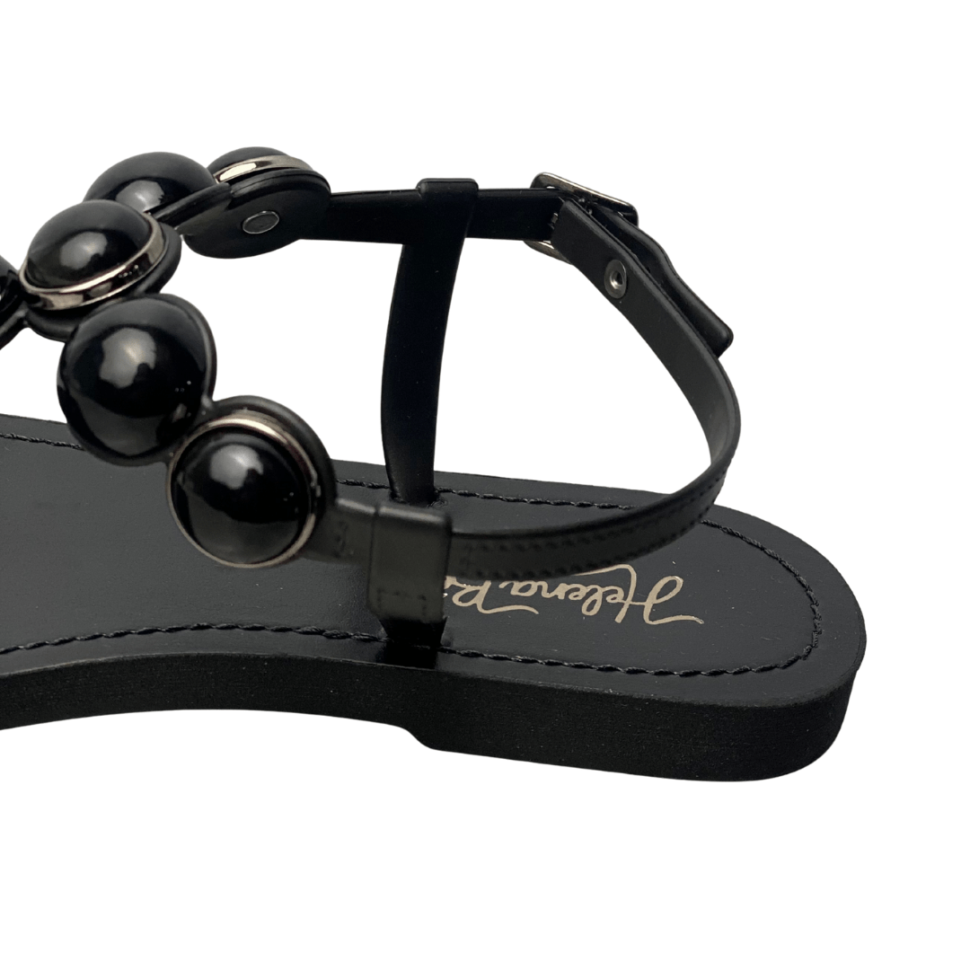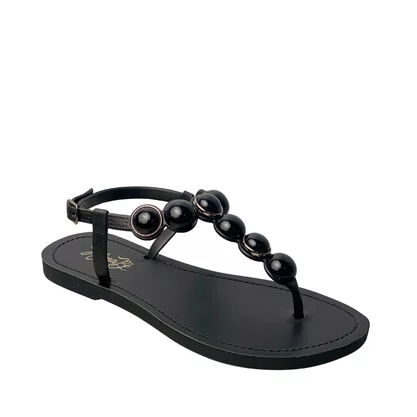 Rasteirinha Helena Be Feminina Preto com Fecho Fivela e Esferas