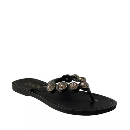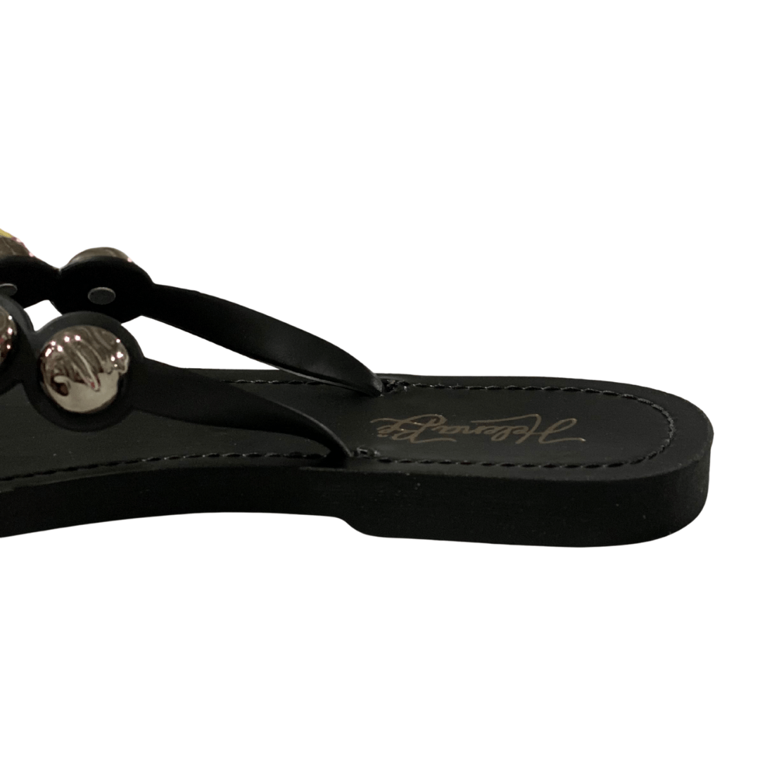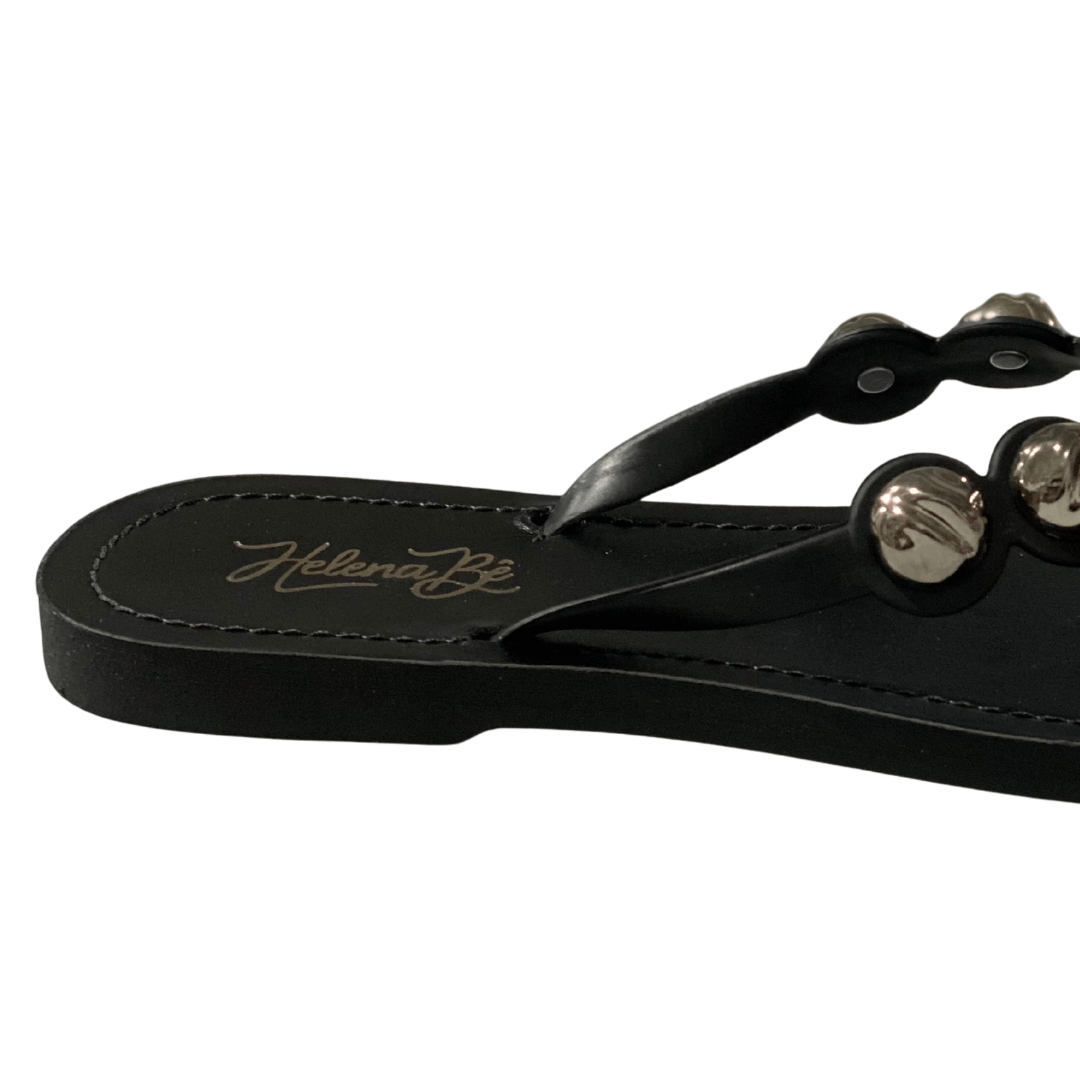 Rasteirinha Helena Be Feminina Preto com Ferragens Esféricas