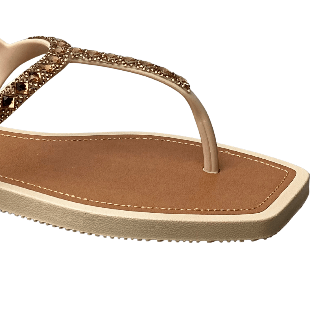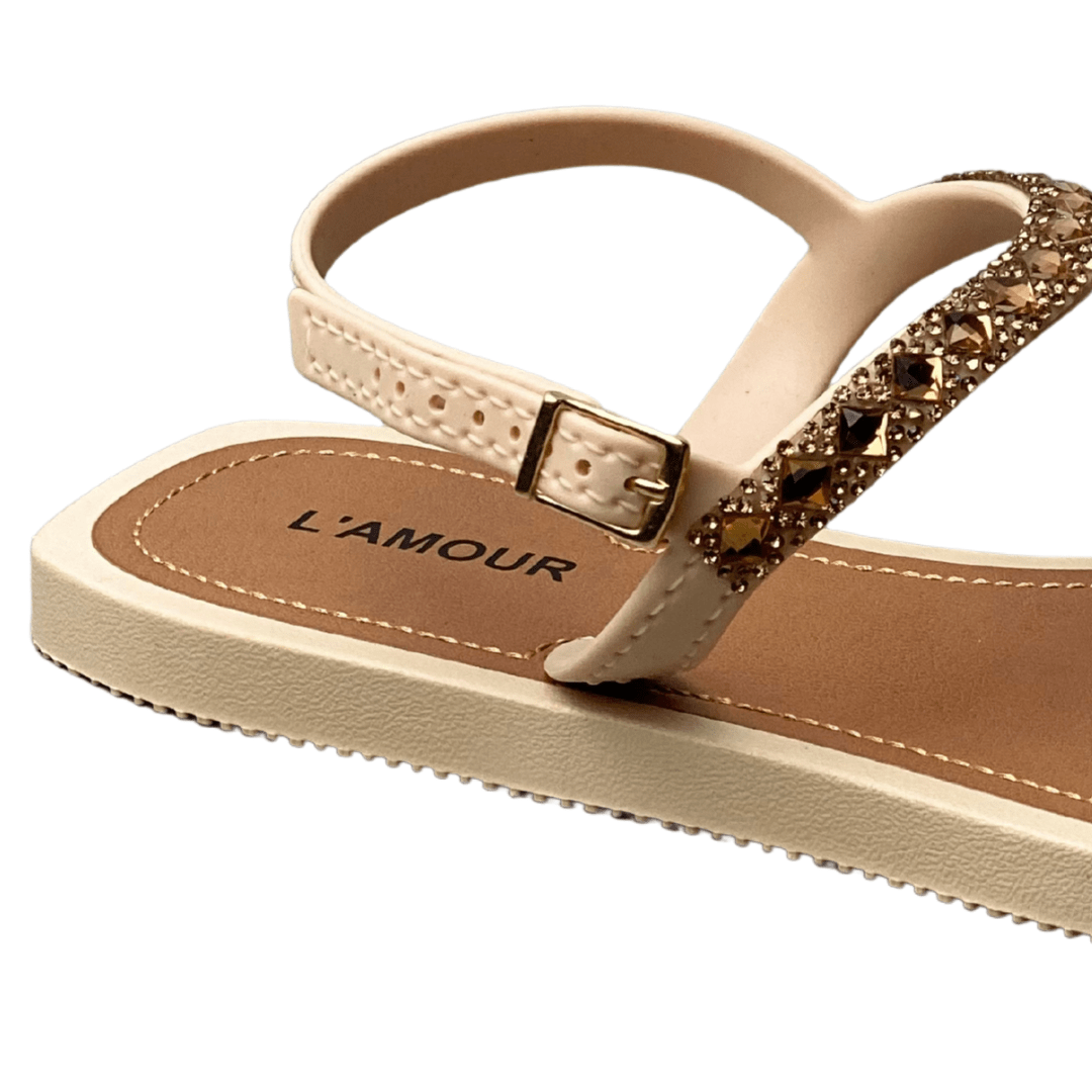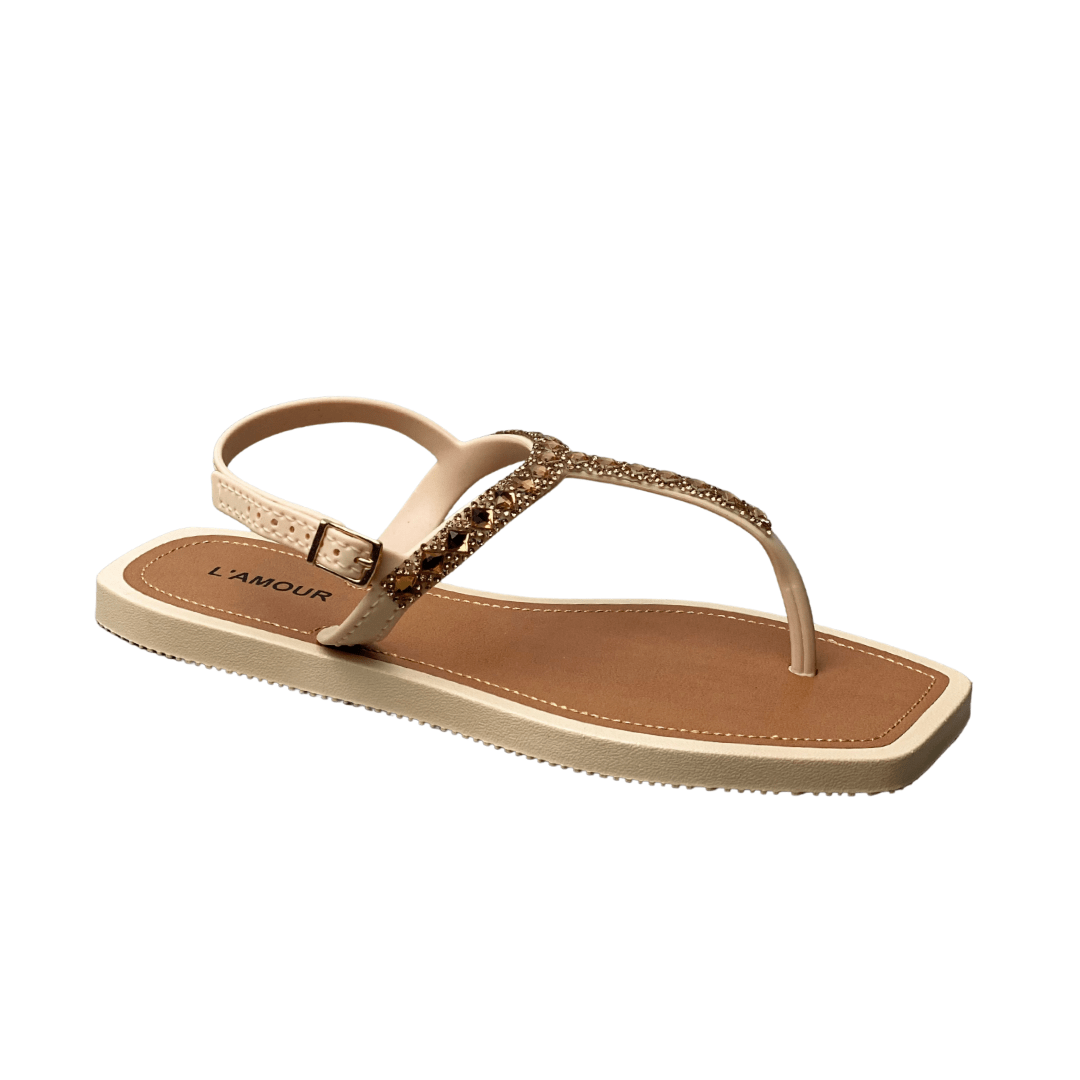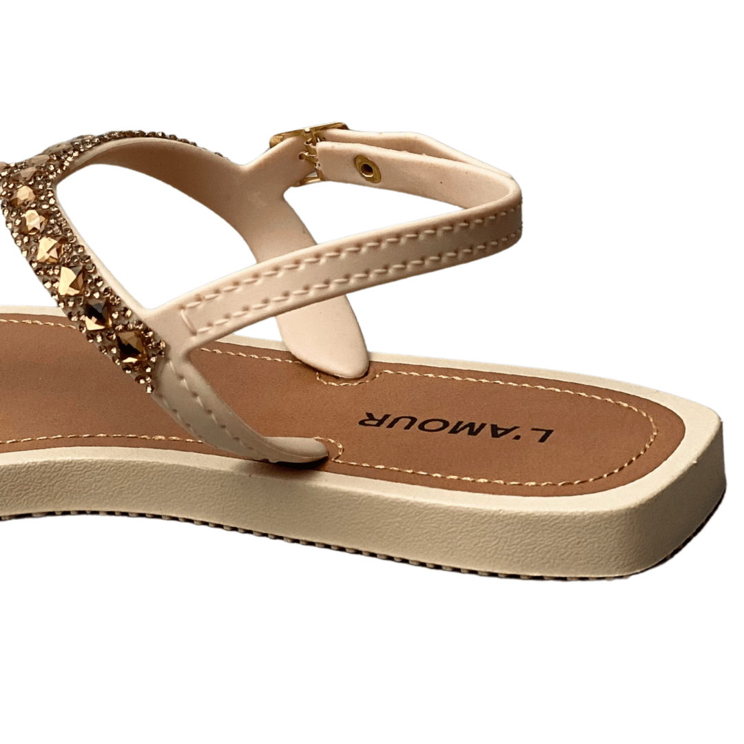 Rasteirinha L’amour Feminina Bege com Tira Cravejada