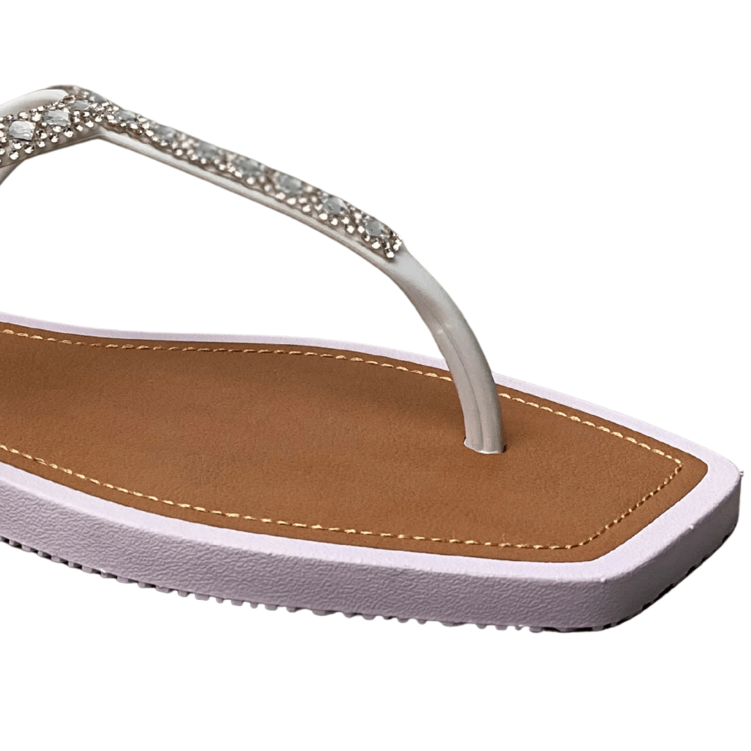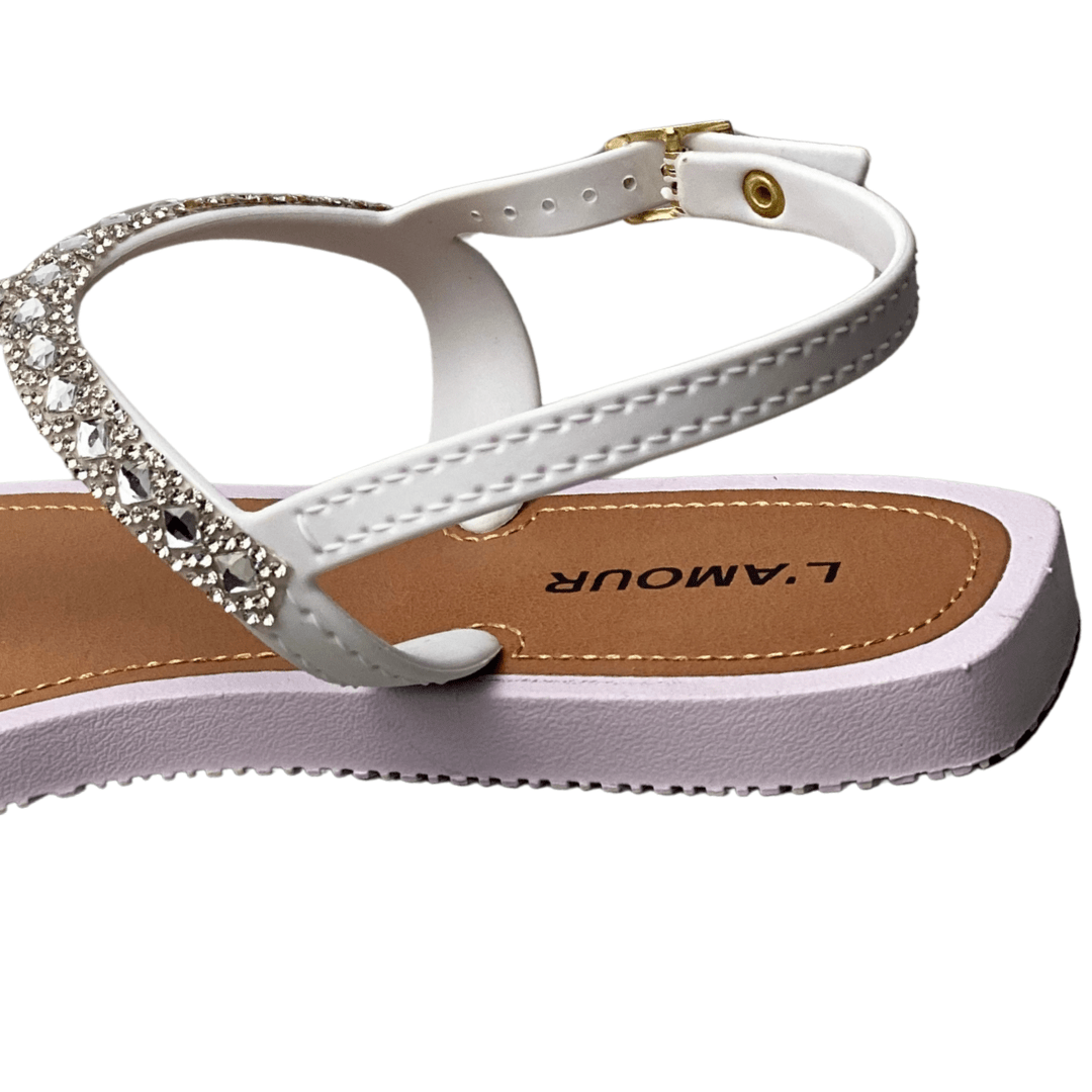 Rasteirinha L’amour Feminina Branco com Tira Cravejada