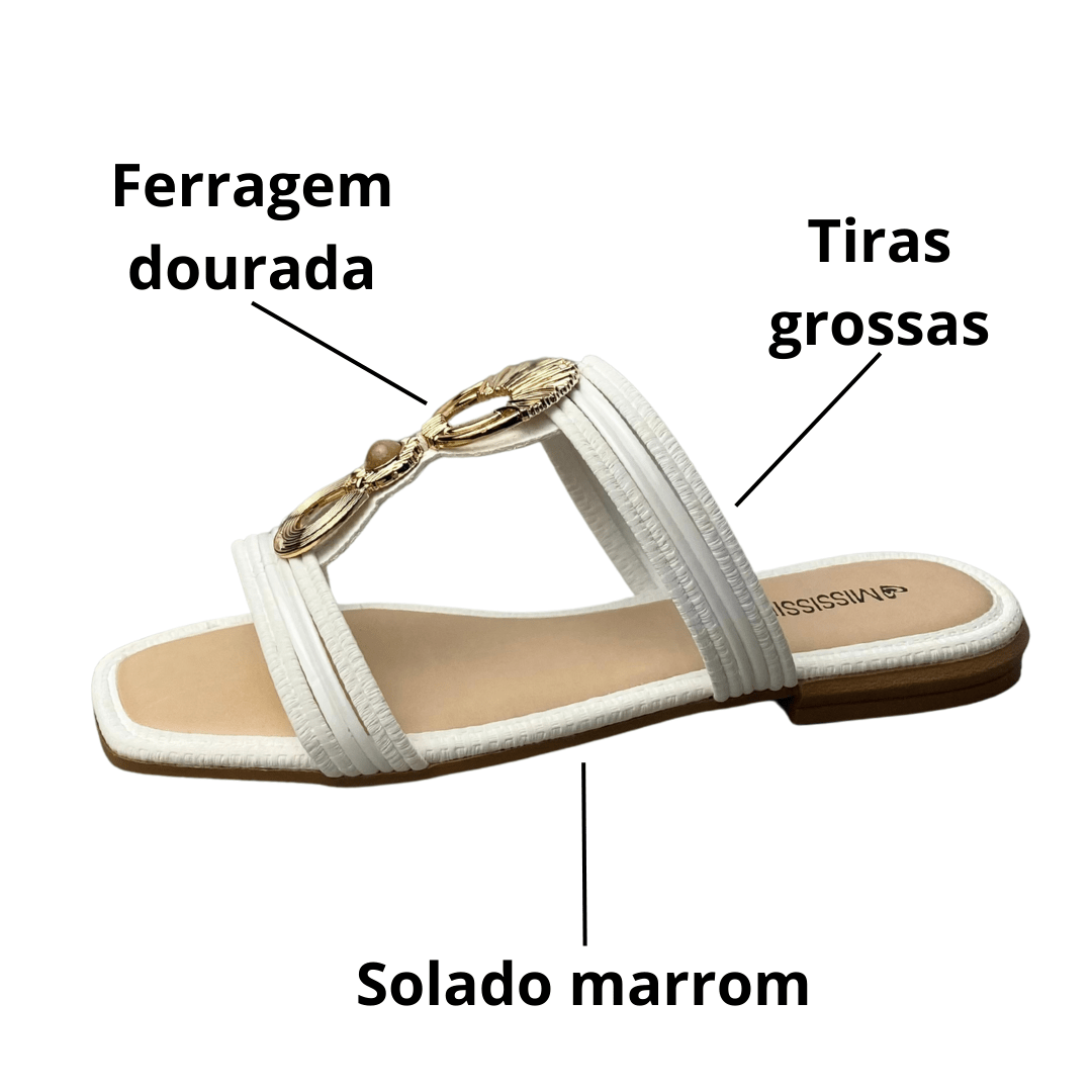 Rasteirinha Mississipi Feminina White com Ferragem Dourada