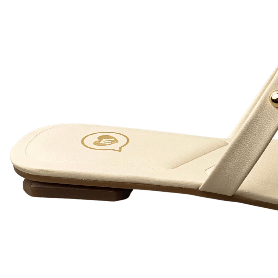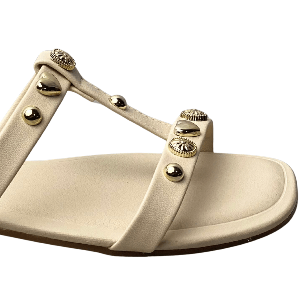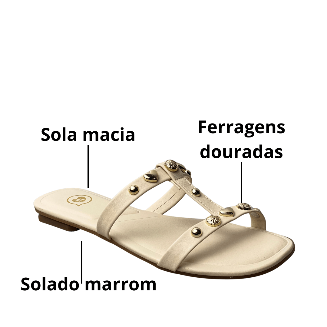 Rasteirinha Feminina Creme com Ferragens Douradas
