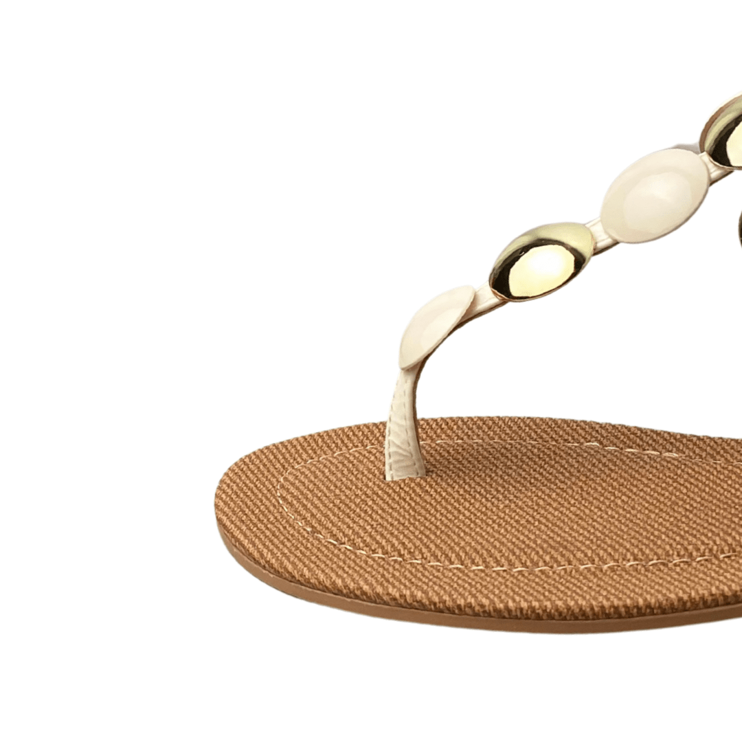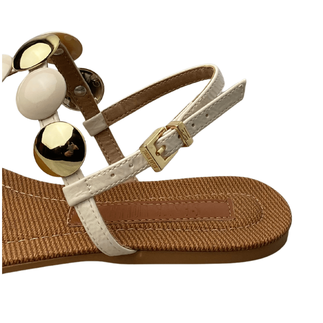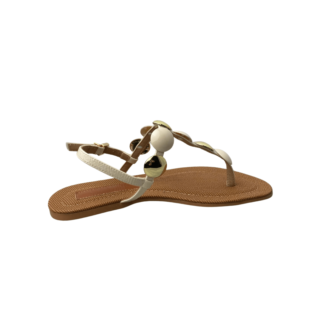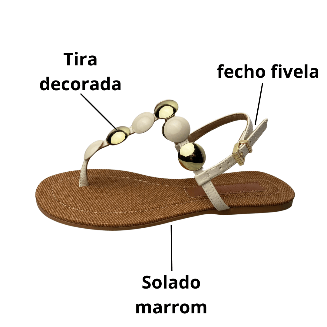 Rasteirinha Santa Lolla Feminina Branco Off Ferragens Douradas