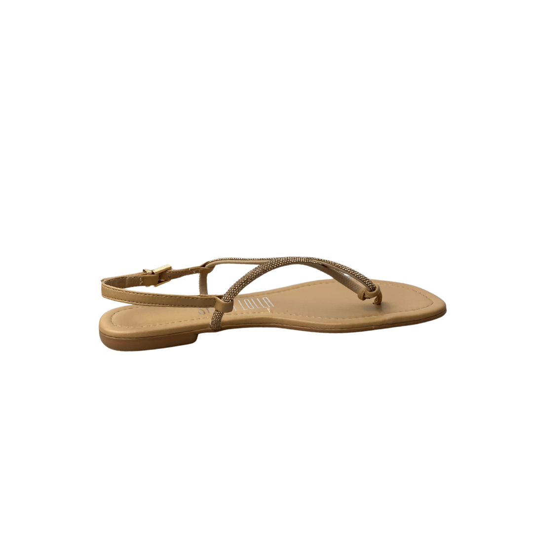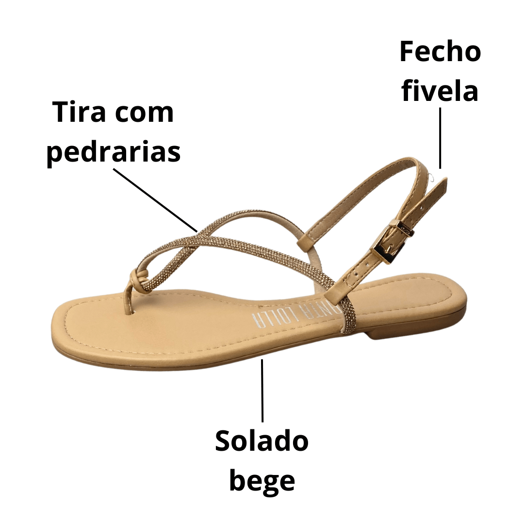 Um calçado que une sofisticação e conforto, perfeito para quem deseja leveza no dia a dia sem abrir mão do estilo. As tiras cravejadas dão um toque delicado e moderno, tornando a rasteirinha ideal para compor desde produções casuais até looks mais elegantes.