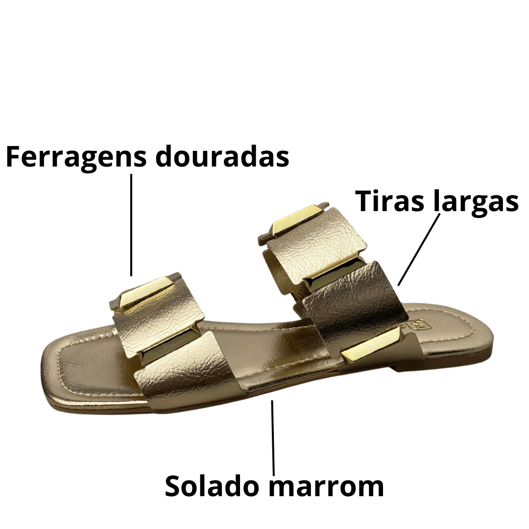 Rasteirinha Santinelli Feminina Ouro Light Ferragens Douradas