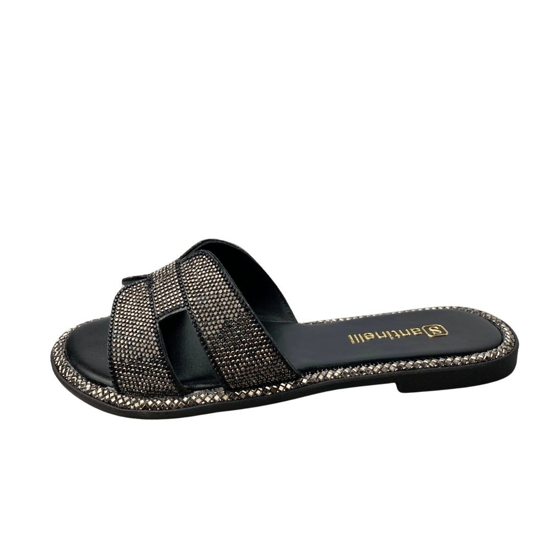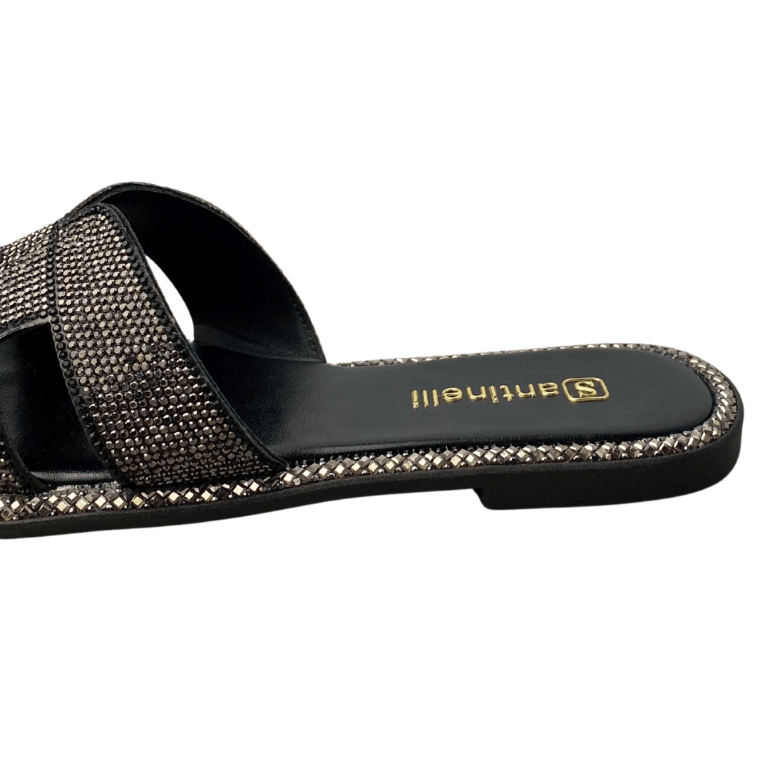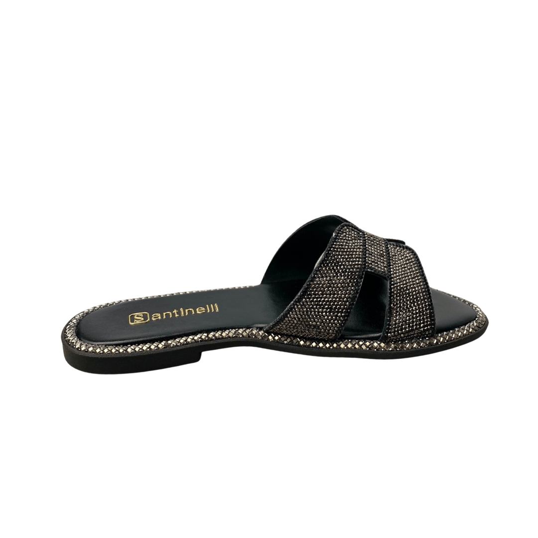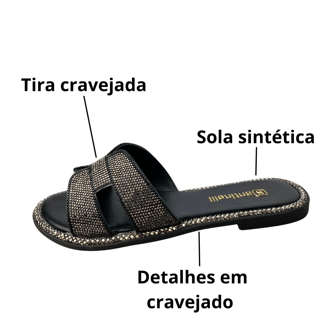 Rasteirinha Santinelli Feminina Preta – Tira Cravejada