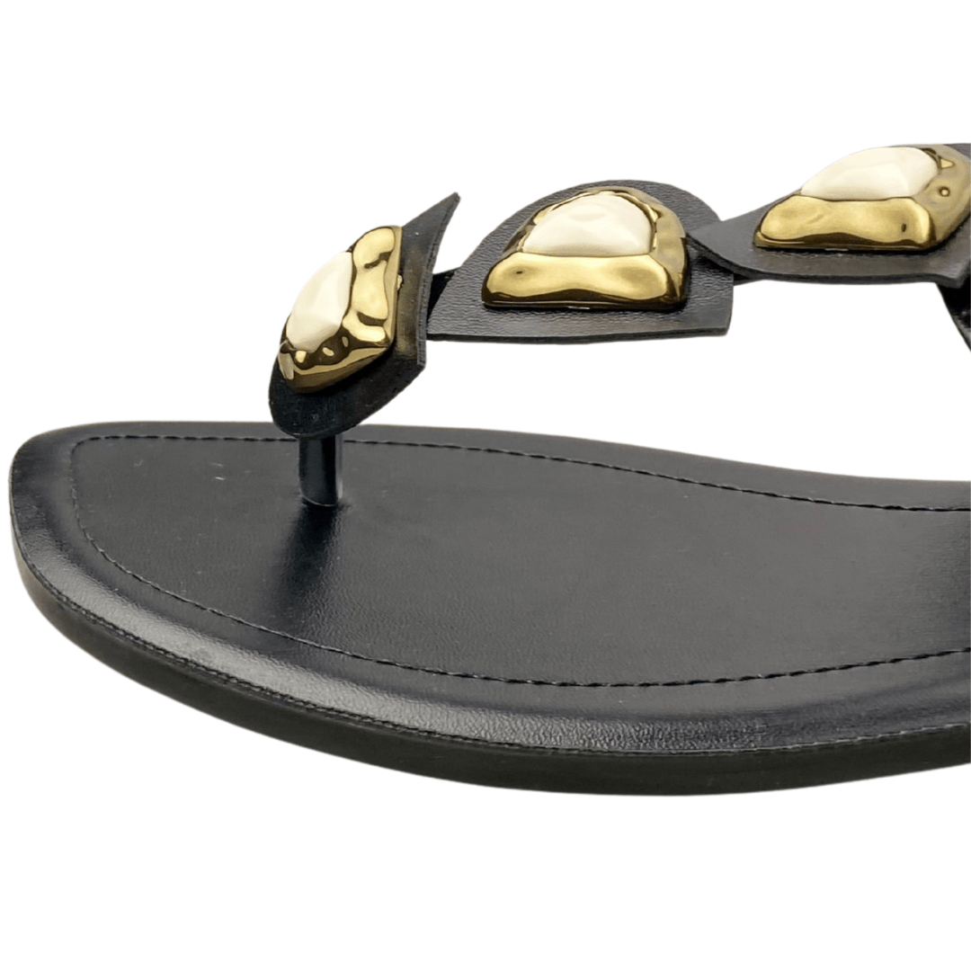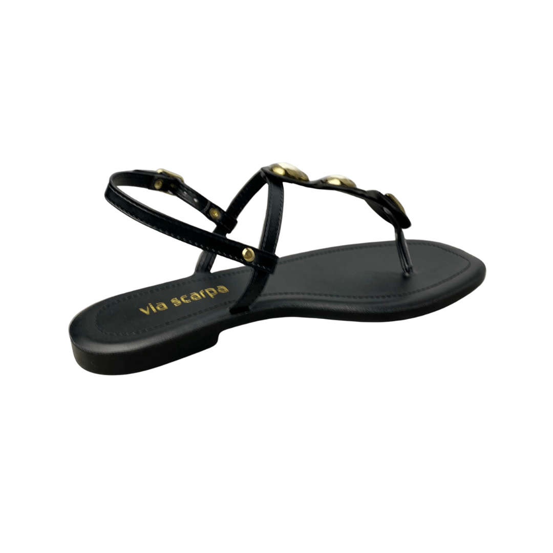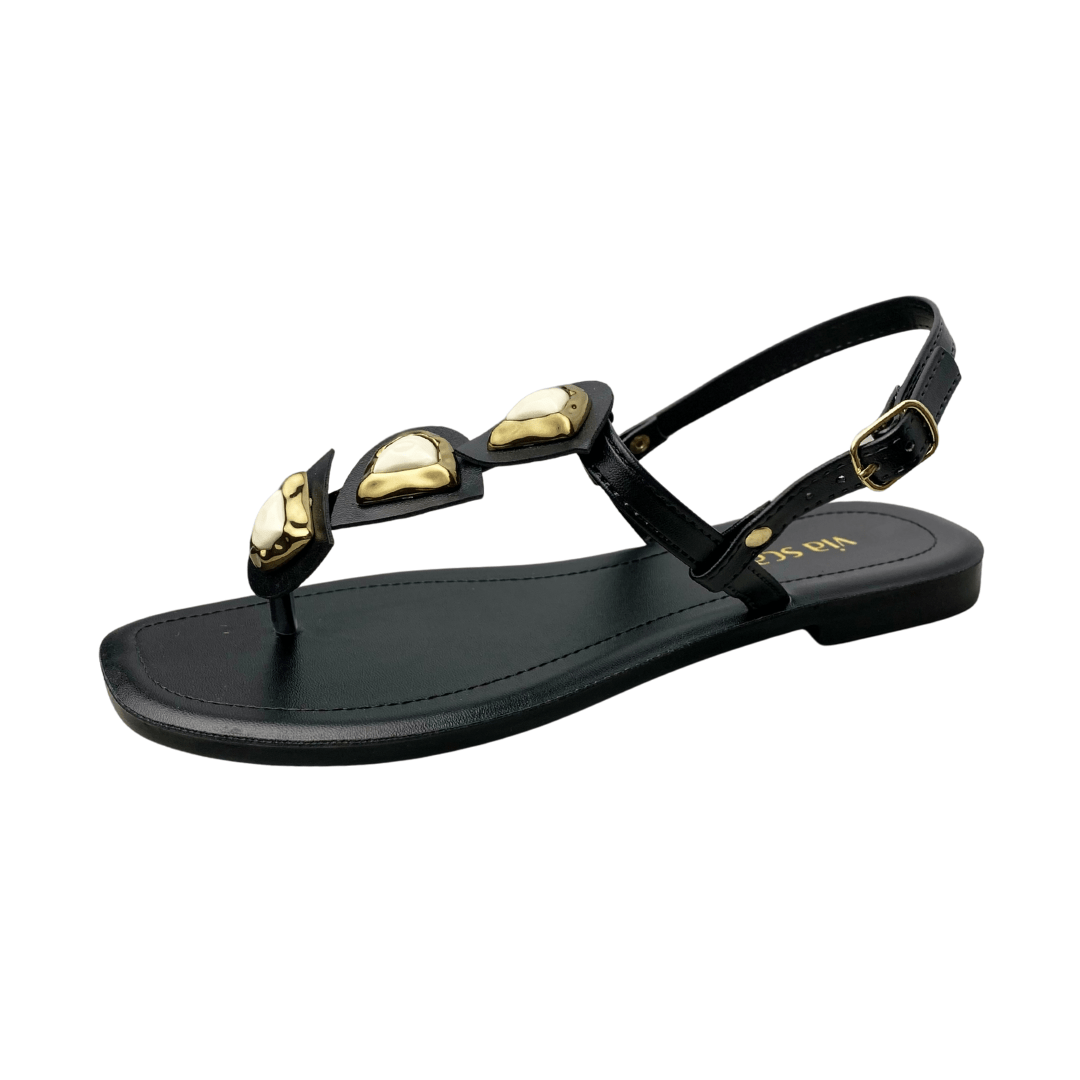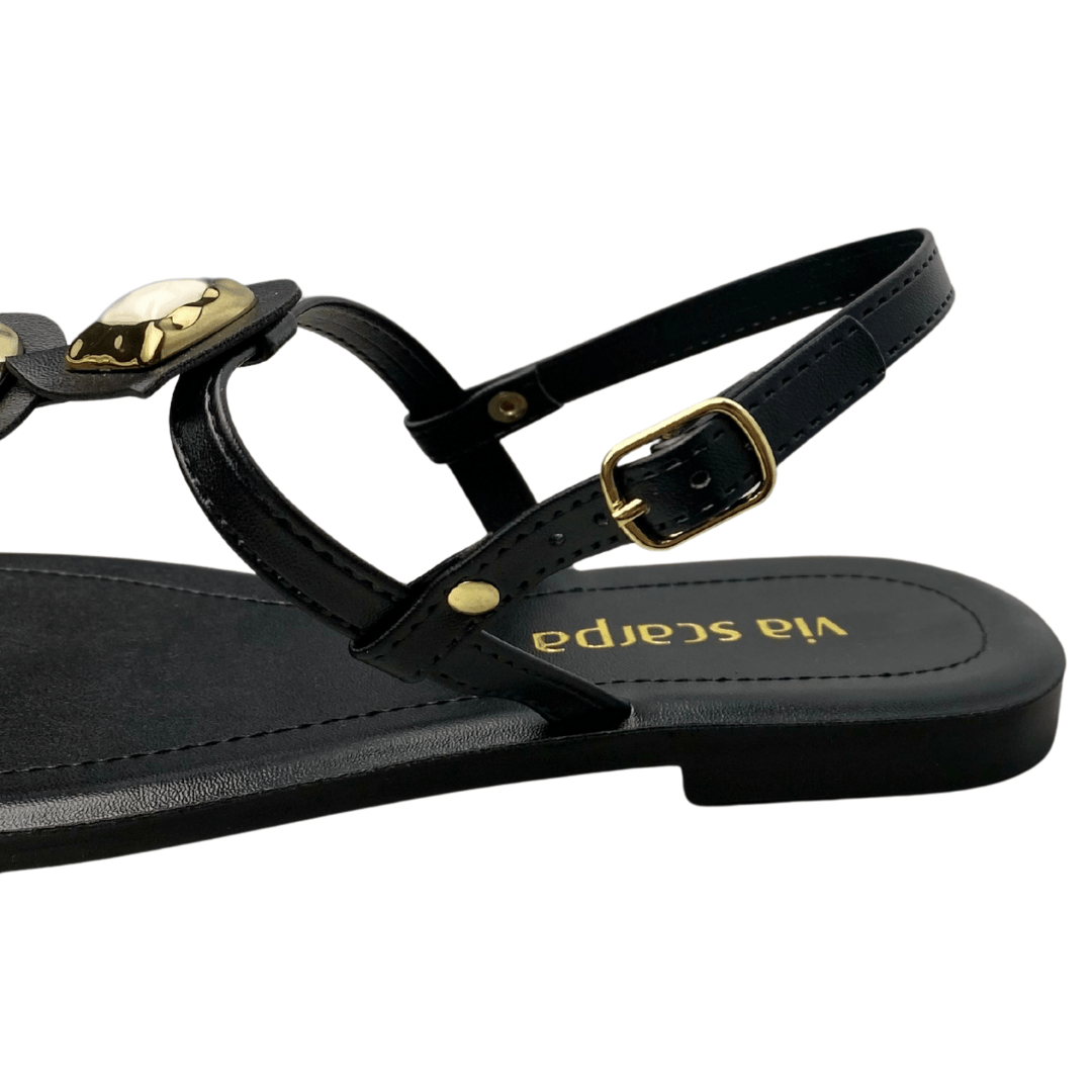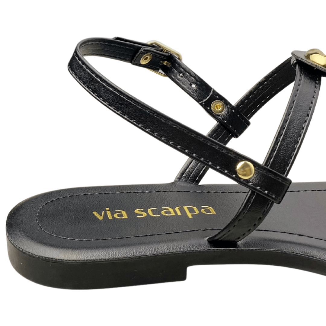 Rasteirinha Via Scarpa Feminina Preta Ferragens Douradas