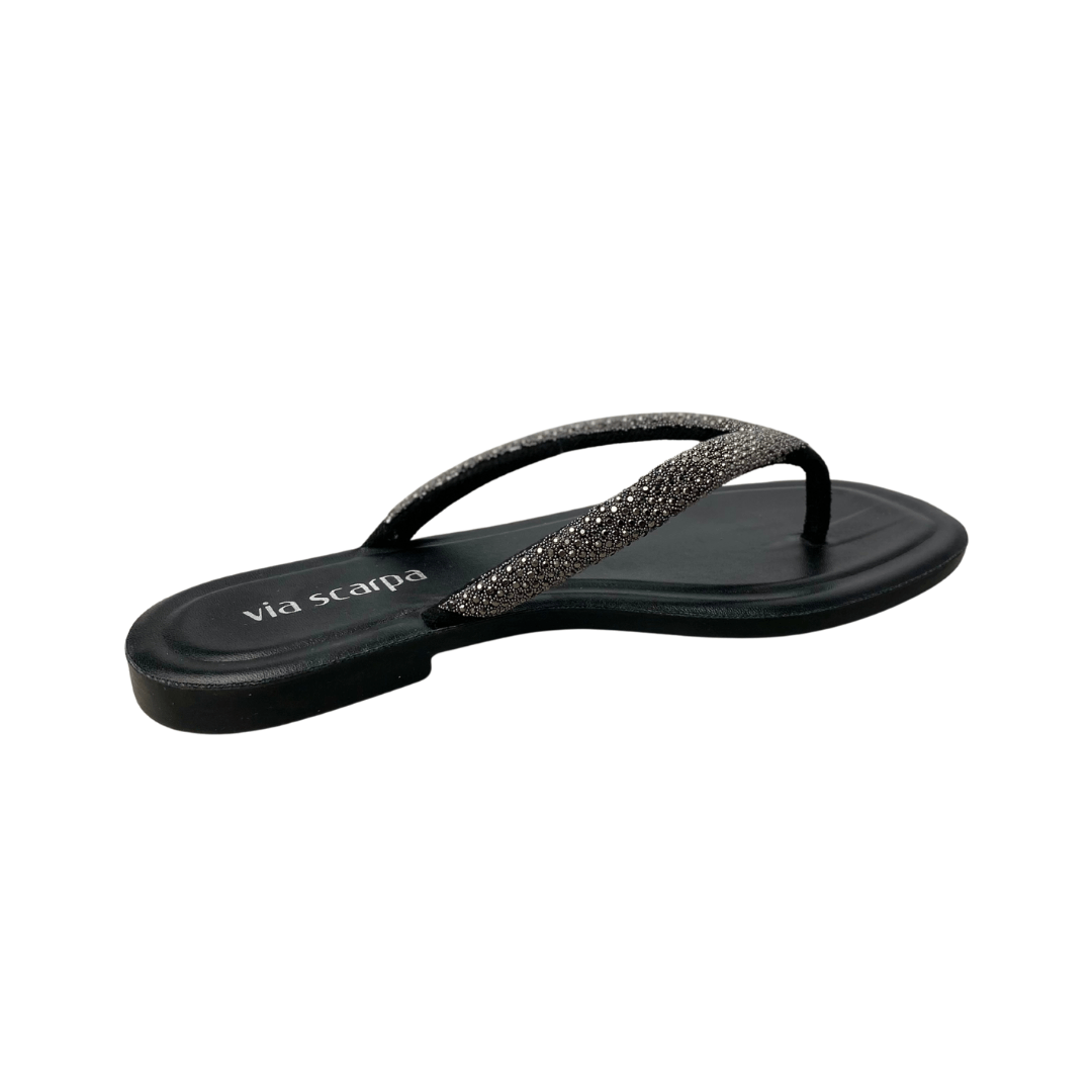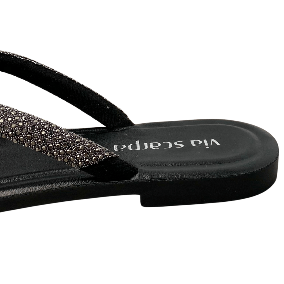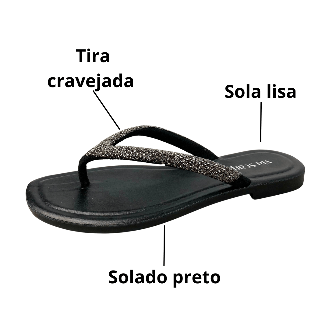 Rasteirinha Via Scarpa Feminina Preta Tira Cravejada
