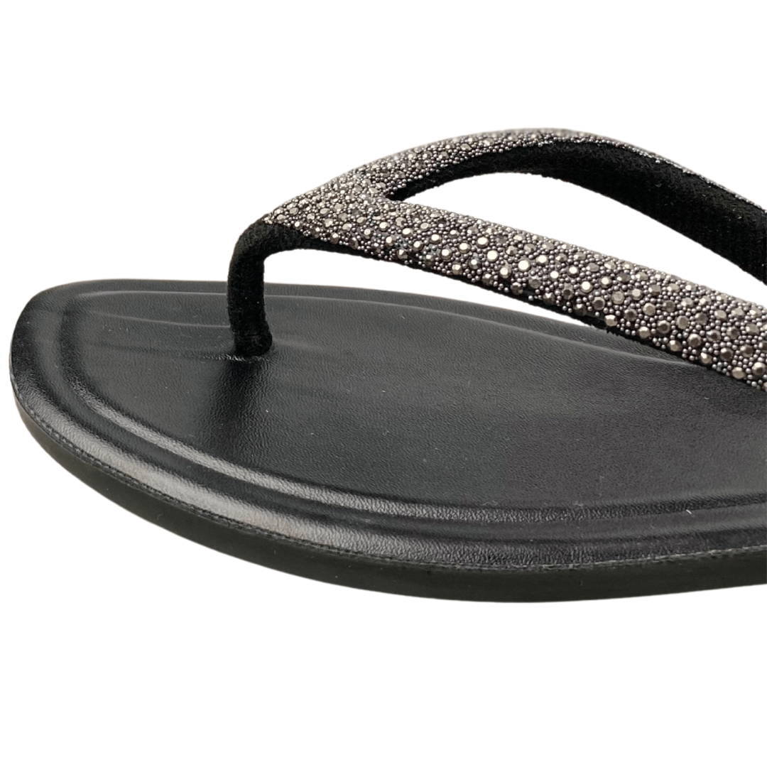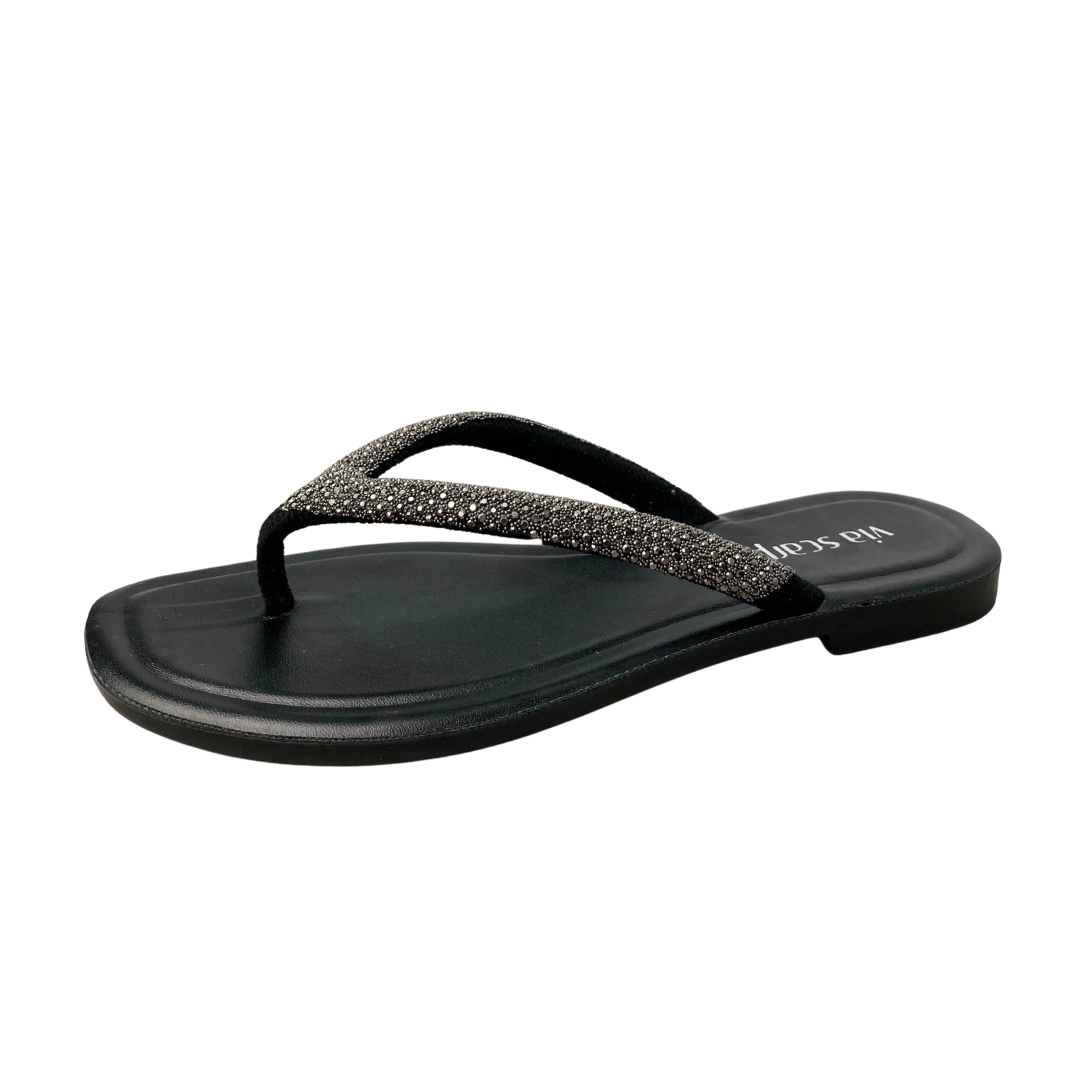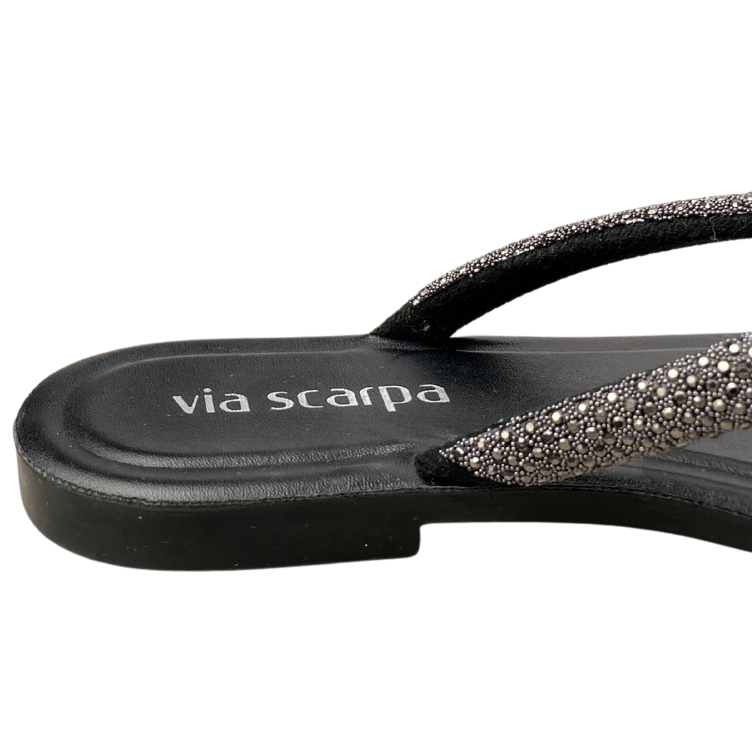 Rasteirinha Via Scarpa Feminina Preta Tira Cravejada
