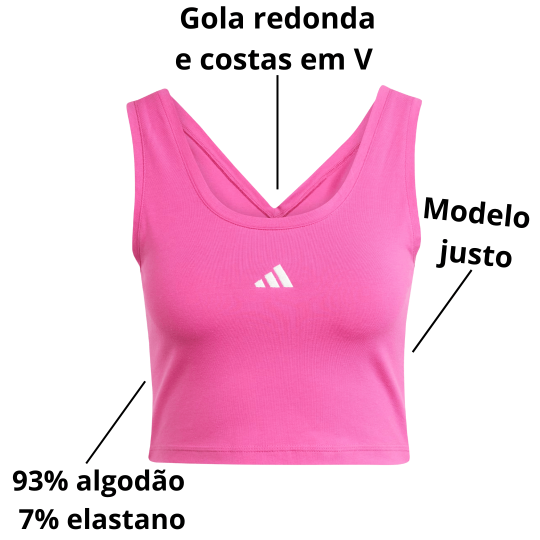 A Regata Cropped Adidas Feminino Pink é ideal para treinos, passeios ou composições casuais. Combine com shorts, saias ou calças de cintura alta para um visual estiloso e confortável. Para conservar a peça, lave em ciclo delicado, evite alvejantes e passe em temperatura baixa.
