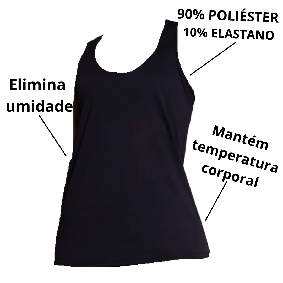 Tecido leve e respirável, ideal para treinos e dias quentes.