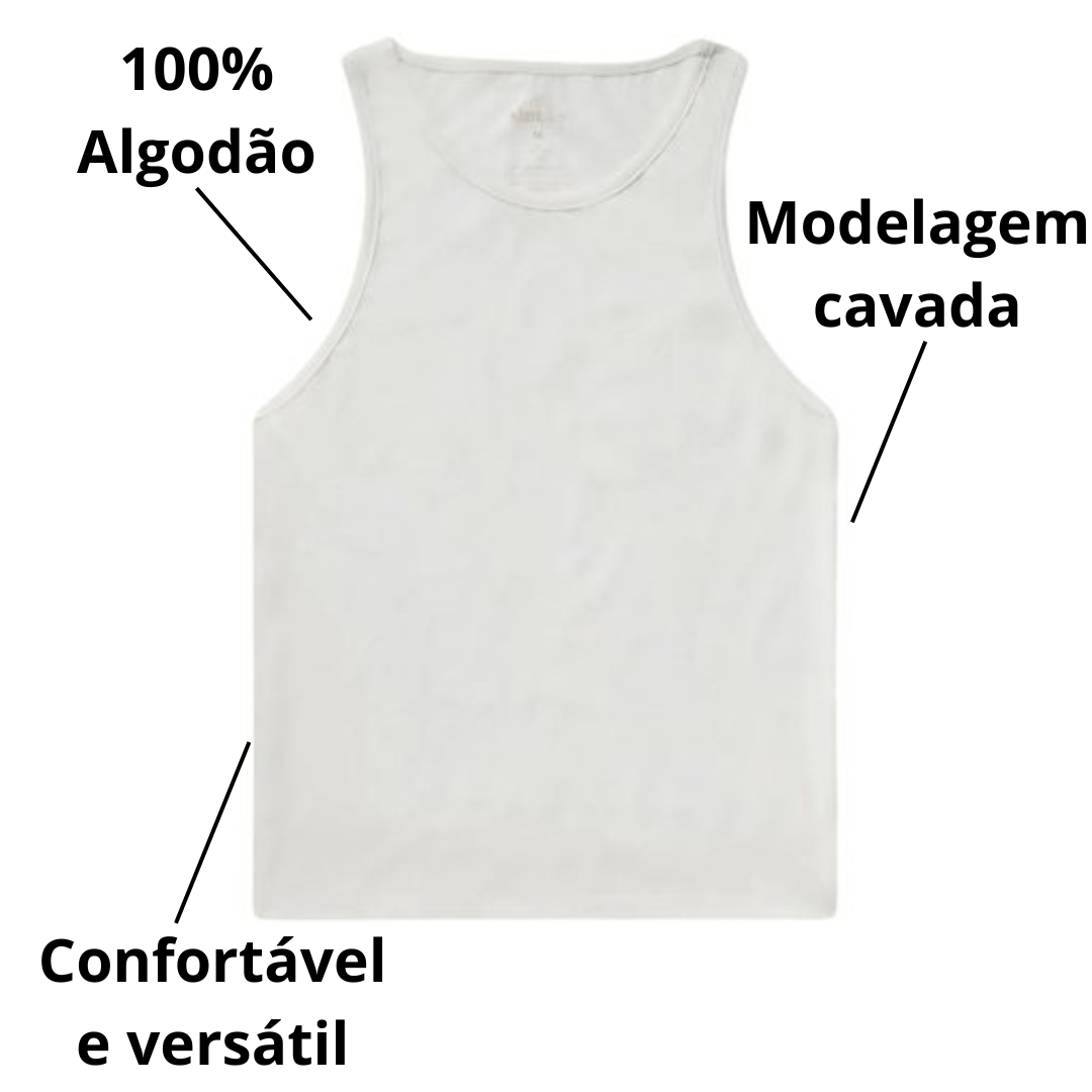 Regata em modelagem cavada, confeccionada em meia malha penteada, 100% algodão.